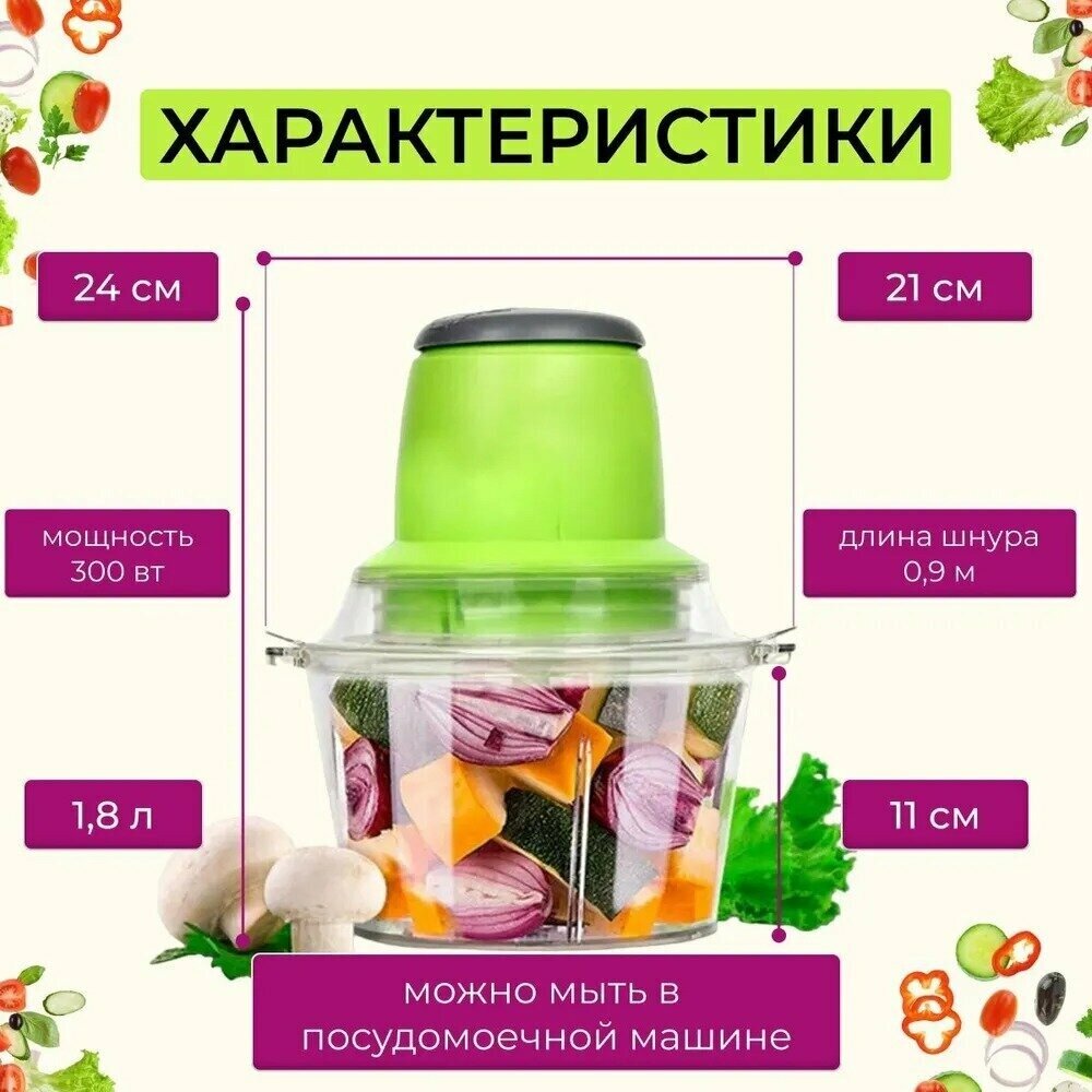Измельчитель , портативный, пластик, 1.8л, белый/зелёный/прозрачный, для фарша, овощей, кофе, орехов