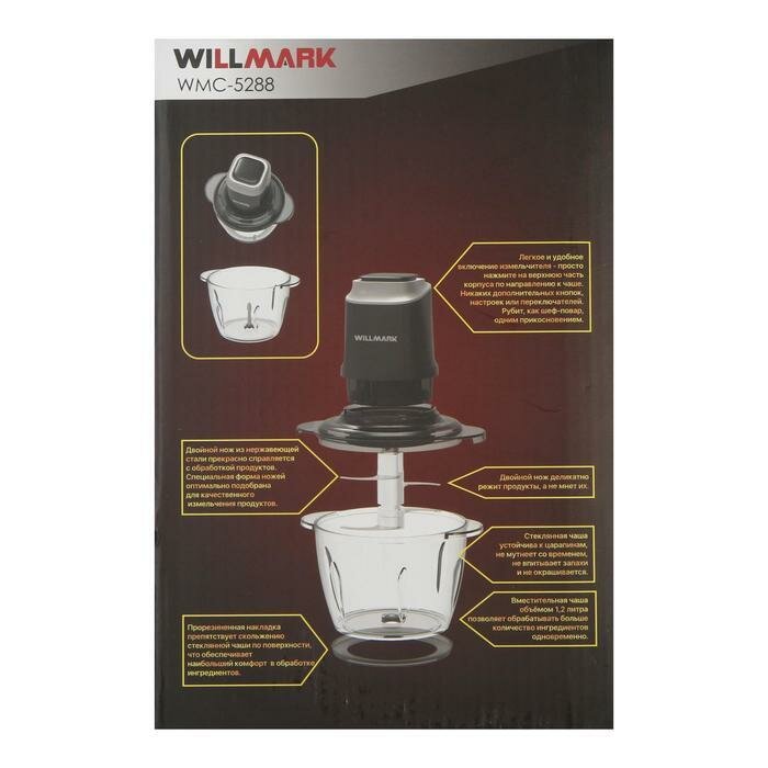 Измельчитель WILLMARK WMC-5288, стекло, 400 Вт, 1.2 л, чёрный интересное: