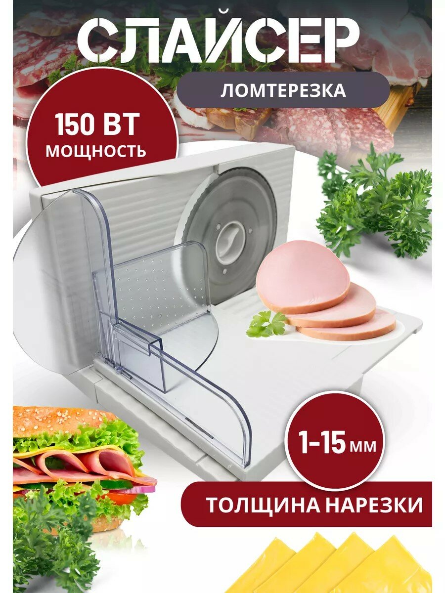Ломтерезка, ломтерезка электрическая, слайсер для нарезки, 1 скорость работы, 150Вт, регулировка толщины нарезки интересное: