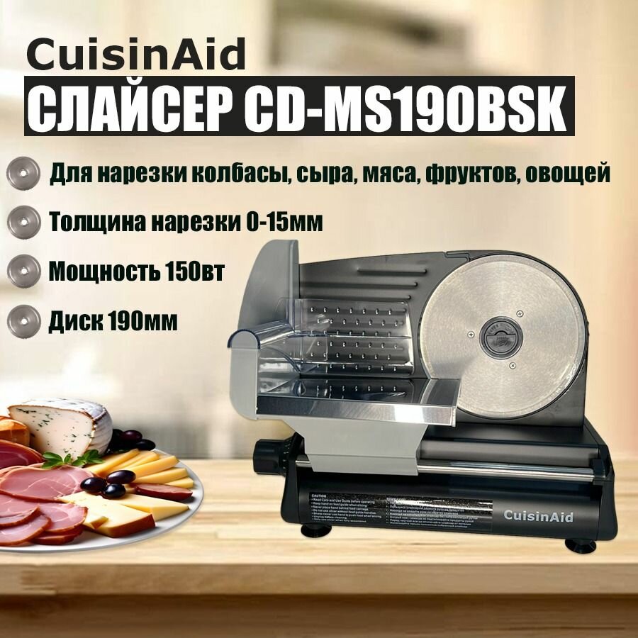 Слайсер для нарезки, ломтерезка электрическая, мясорезка CuisinAid CD-MS190BSK, черный интересное: