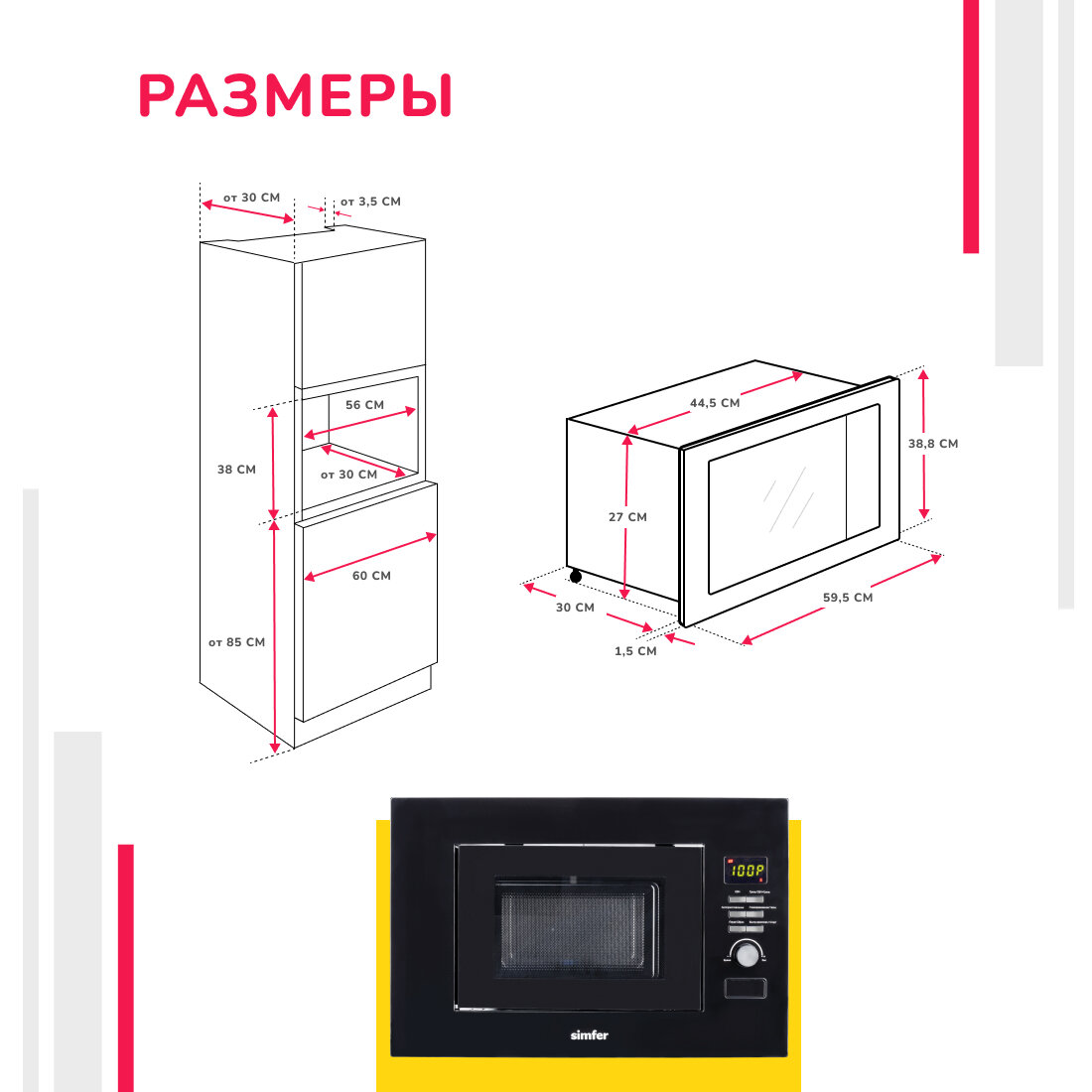 Встраиваемая микроволновая печь Simfer MD2712, 22 литра, 700 Вт, черный интересное: