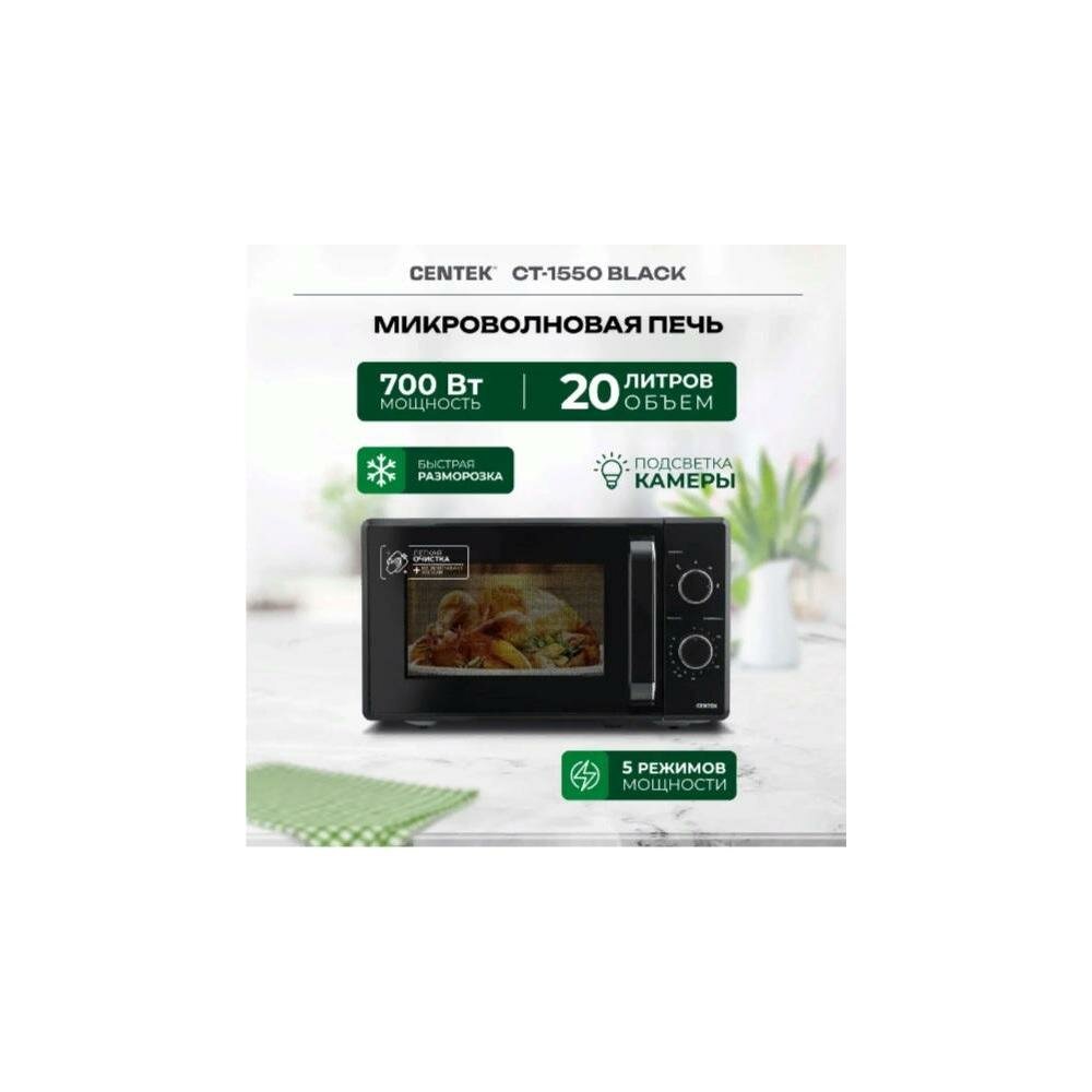 Микроволновая печь CENTEK CT-1550 Black: 700Вт, 20л, 5 уровней мощности/микроволновка СВЧ