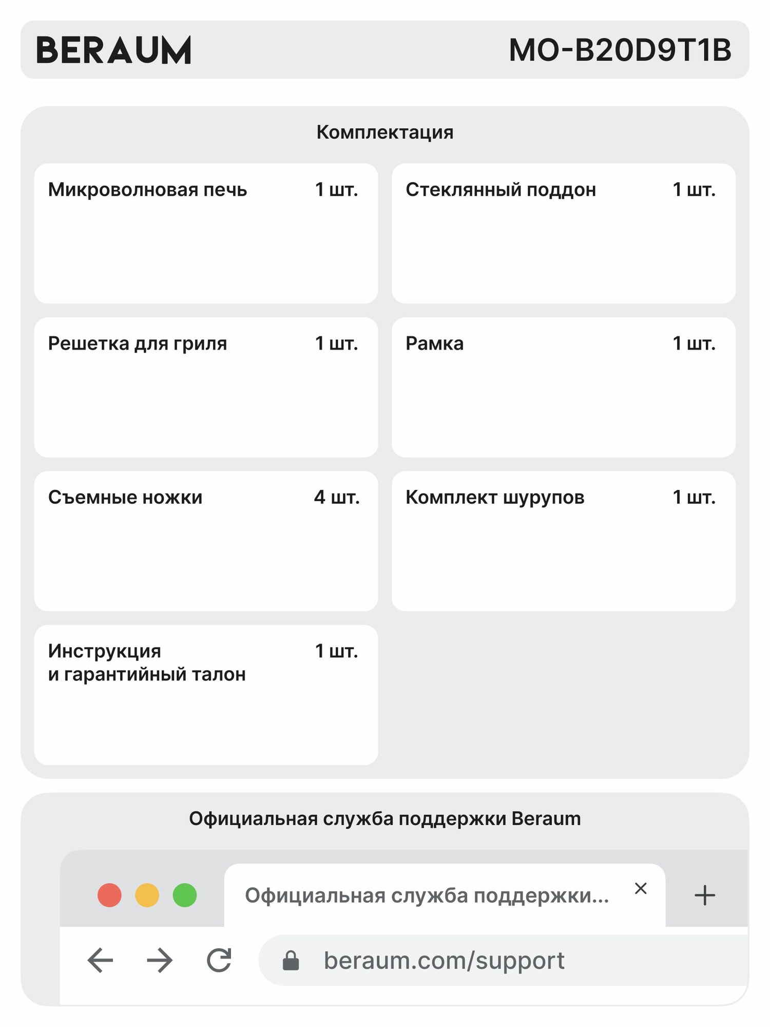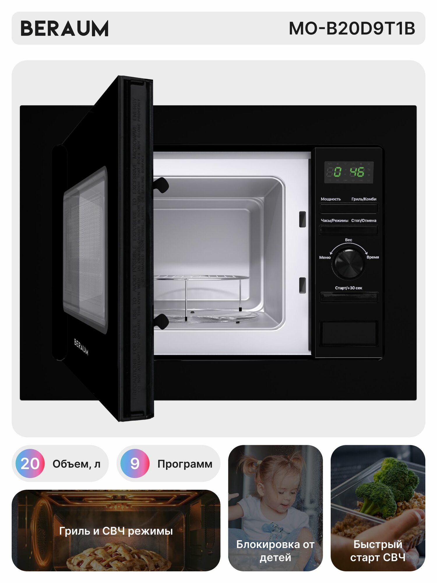 Микроволновая печь встраиваемая Beraum MO-B20D9T1B интересное: