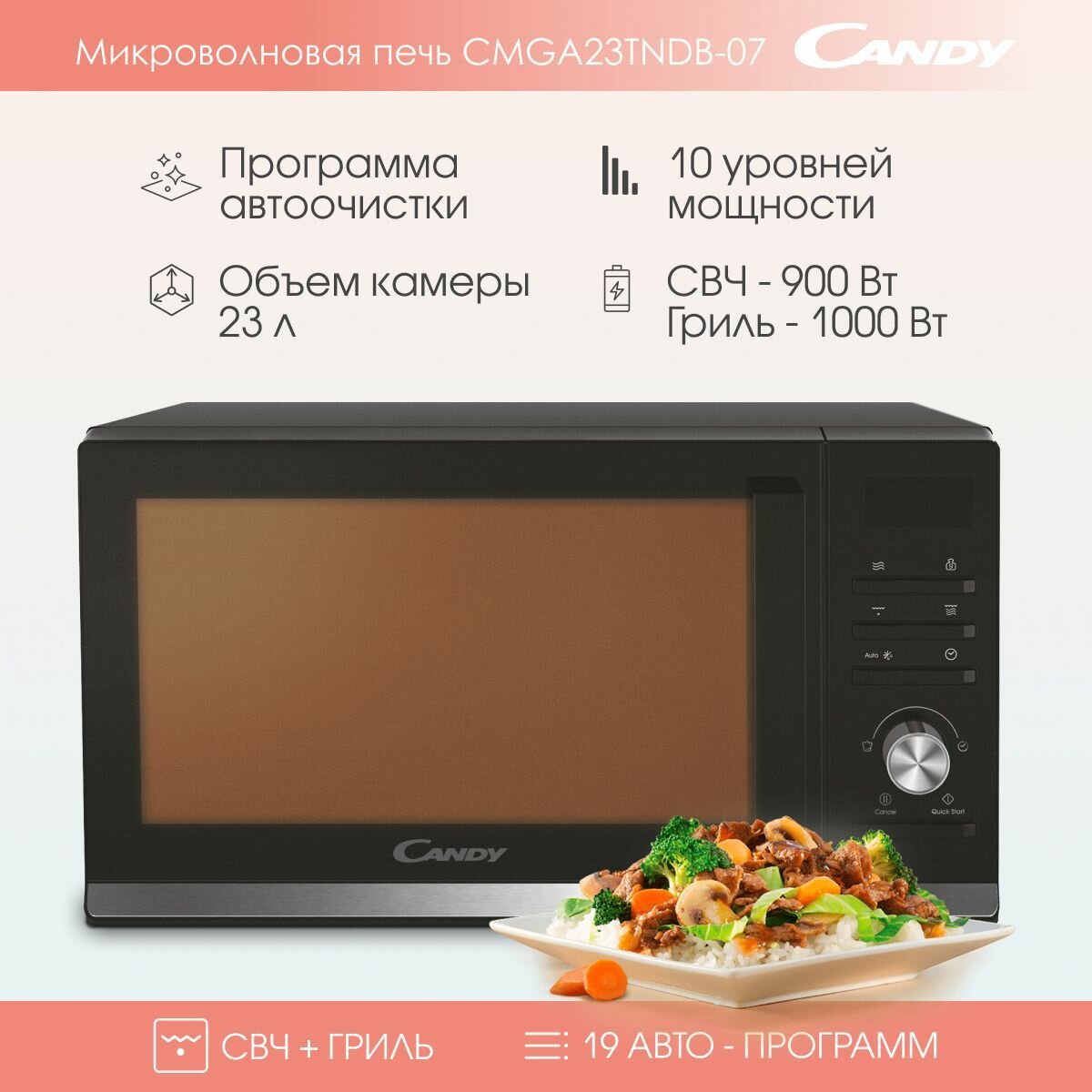 Микроволновая печь - СВЧ Candy CMGA23TNDB-07 23л. 900Вт, черный/серебристый интересное: