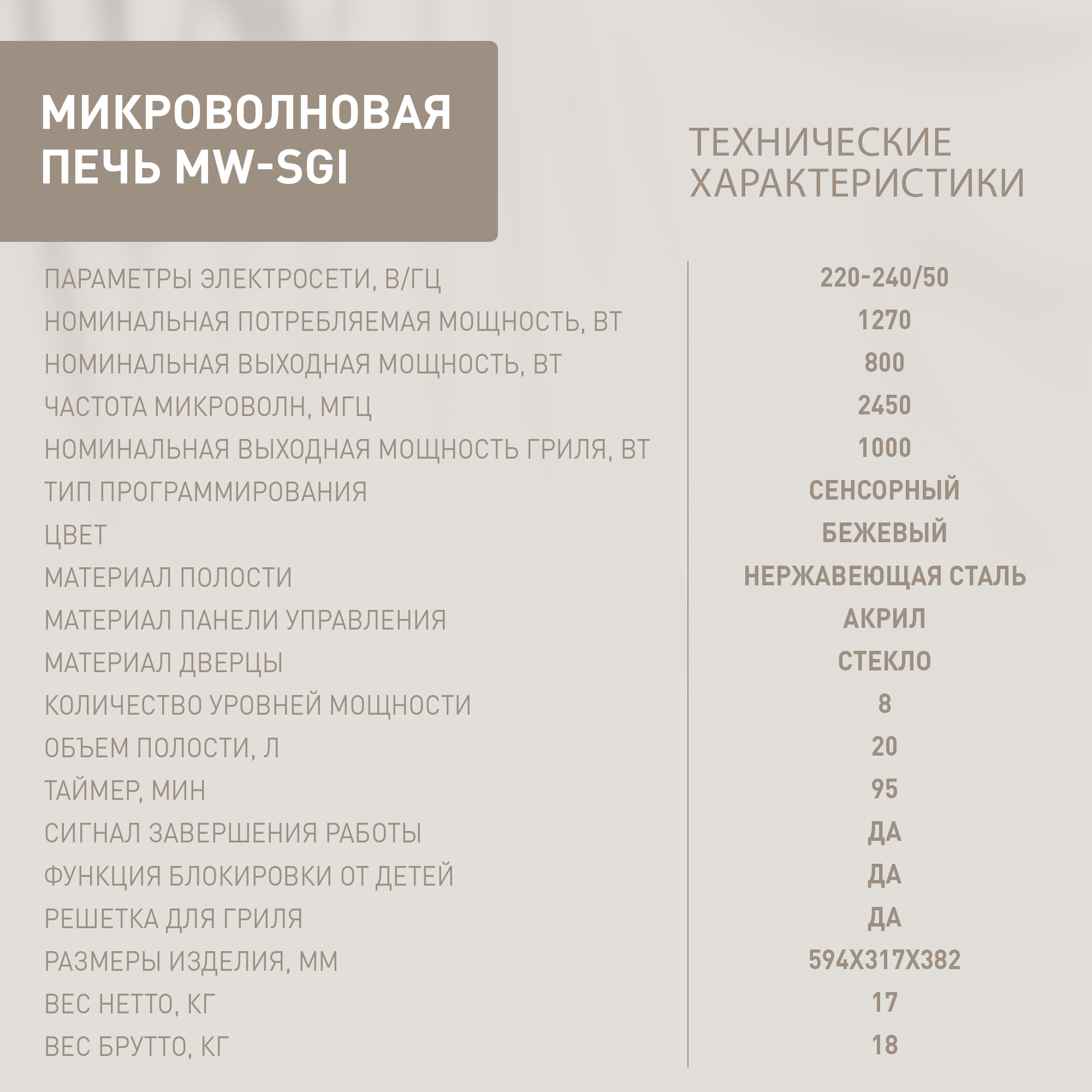 Микроволновая печь Oasis MW-SGI бежевый