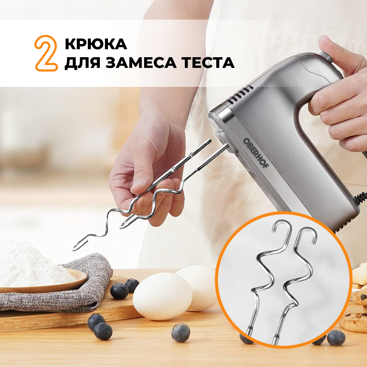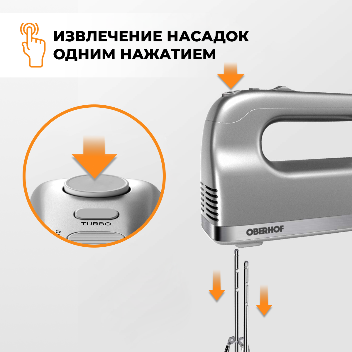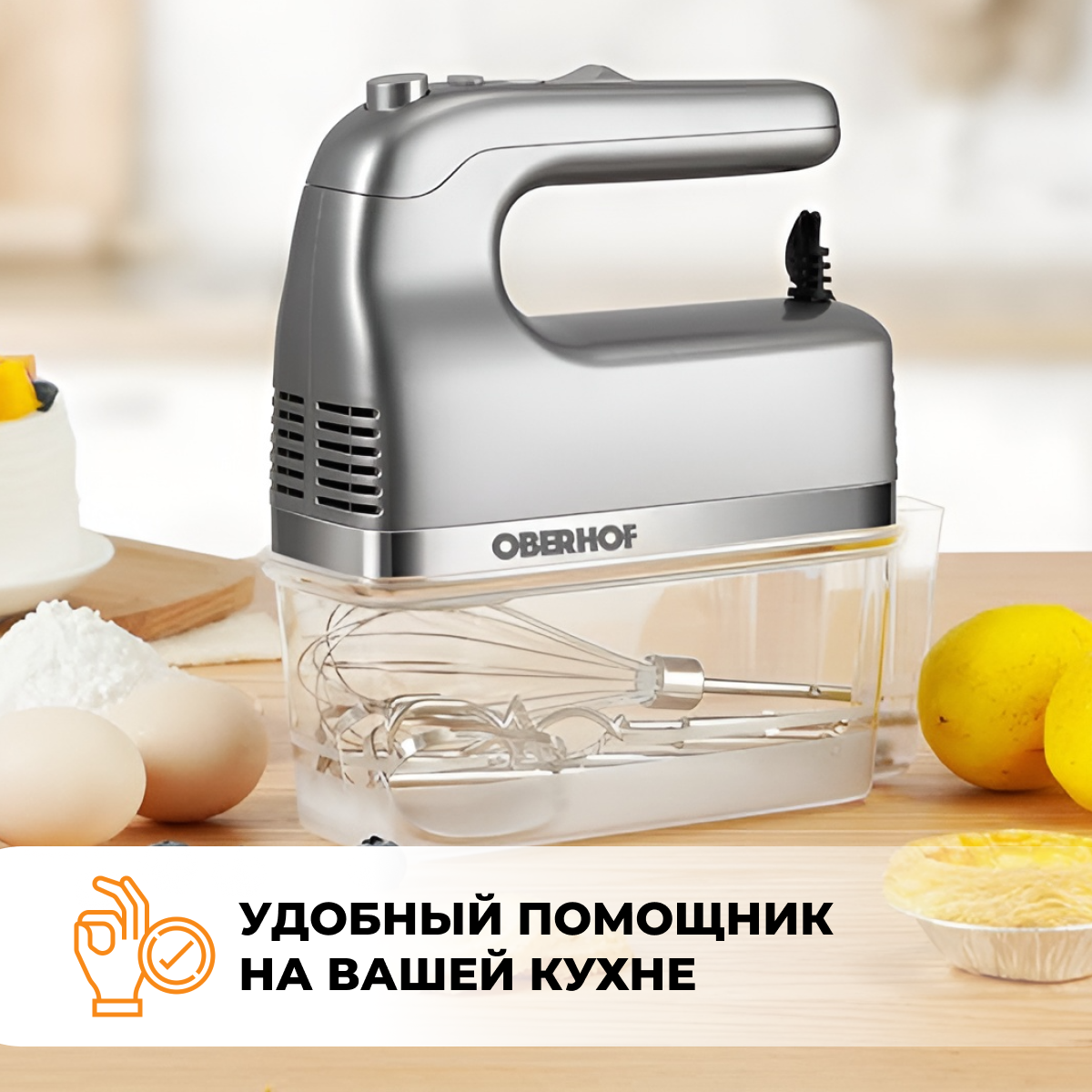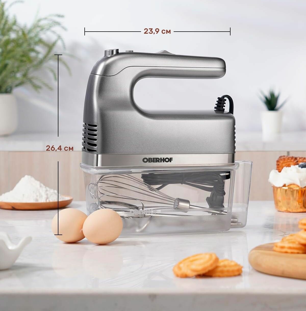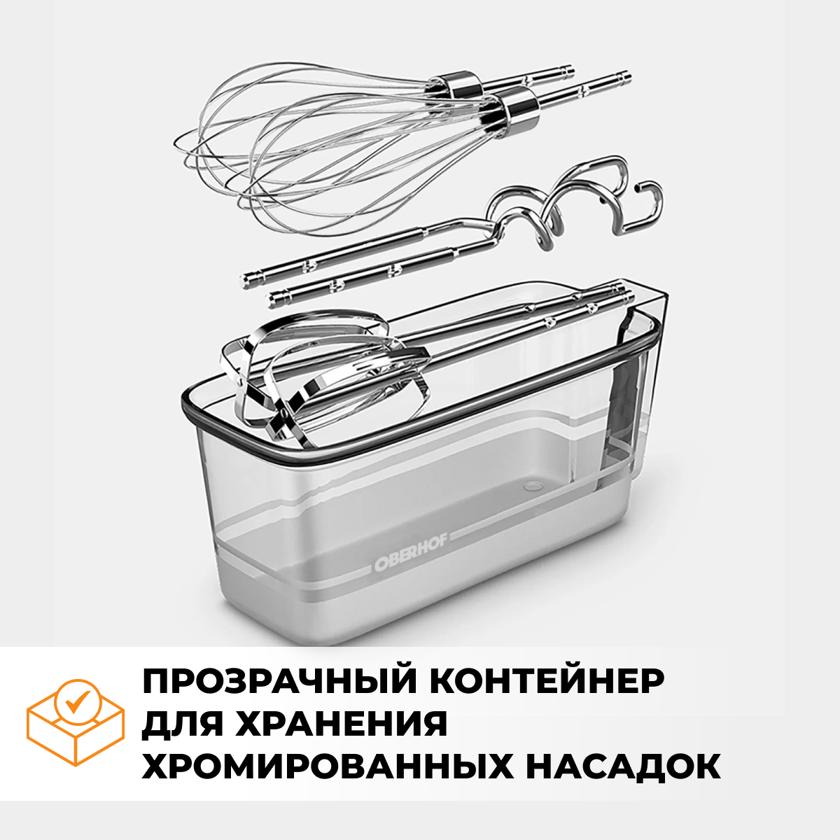 Ручной миксер электрический с турбо режимом и контейнером для насадок из нержавеющей стали 6 шт., 5 скоростей, 400 Вт Oberhof Wirbelsturm D-15 интересное: