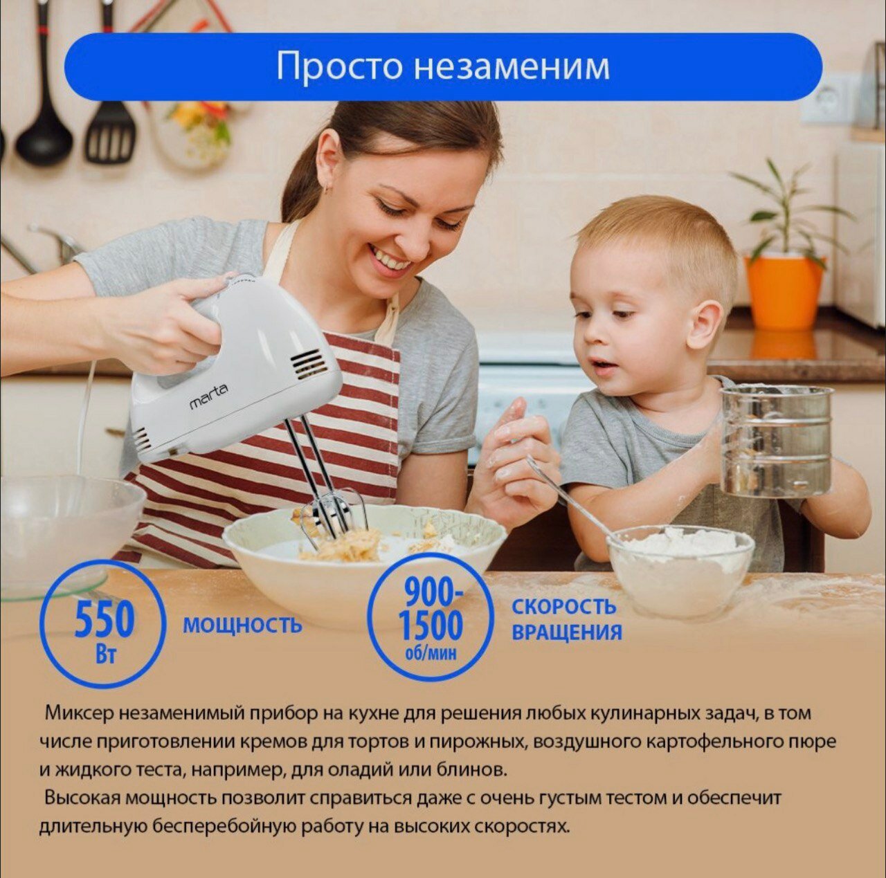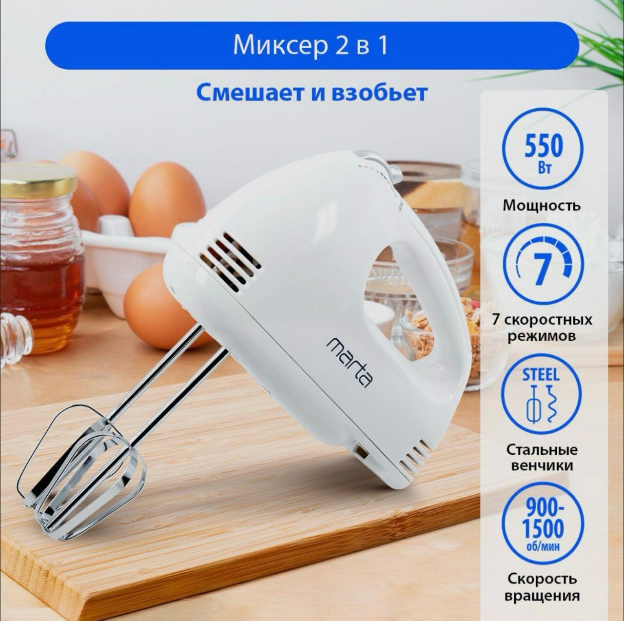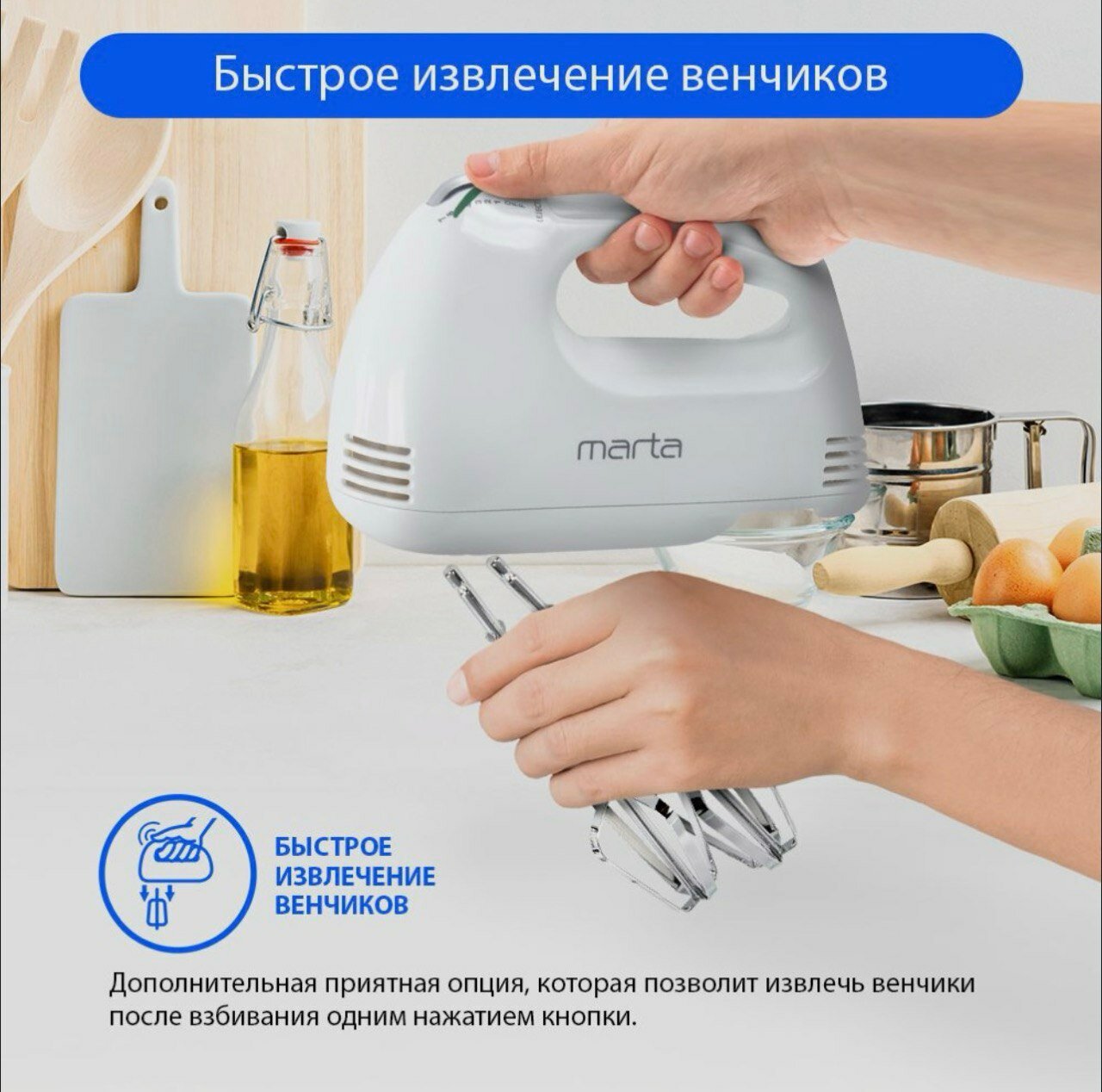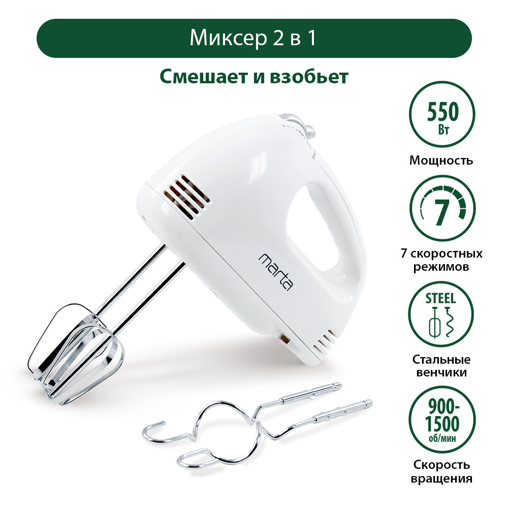 Миксер MARTA MT-MX1527A белый жемчуг интересное: