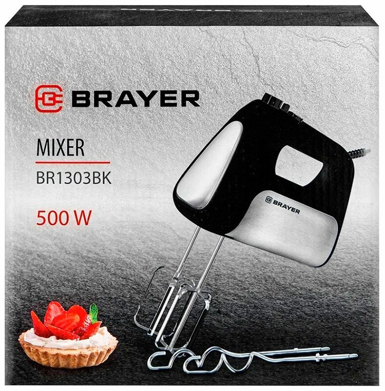 Миксер ручной BRAYER BR1303BK, 500 Вт. 5 скоростей, черный/серебристый