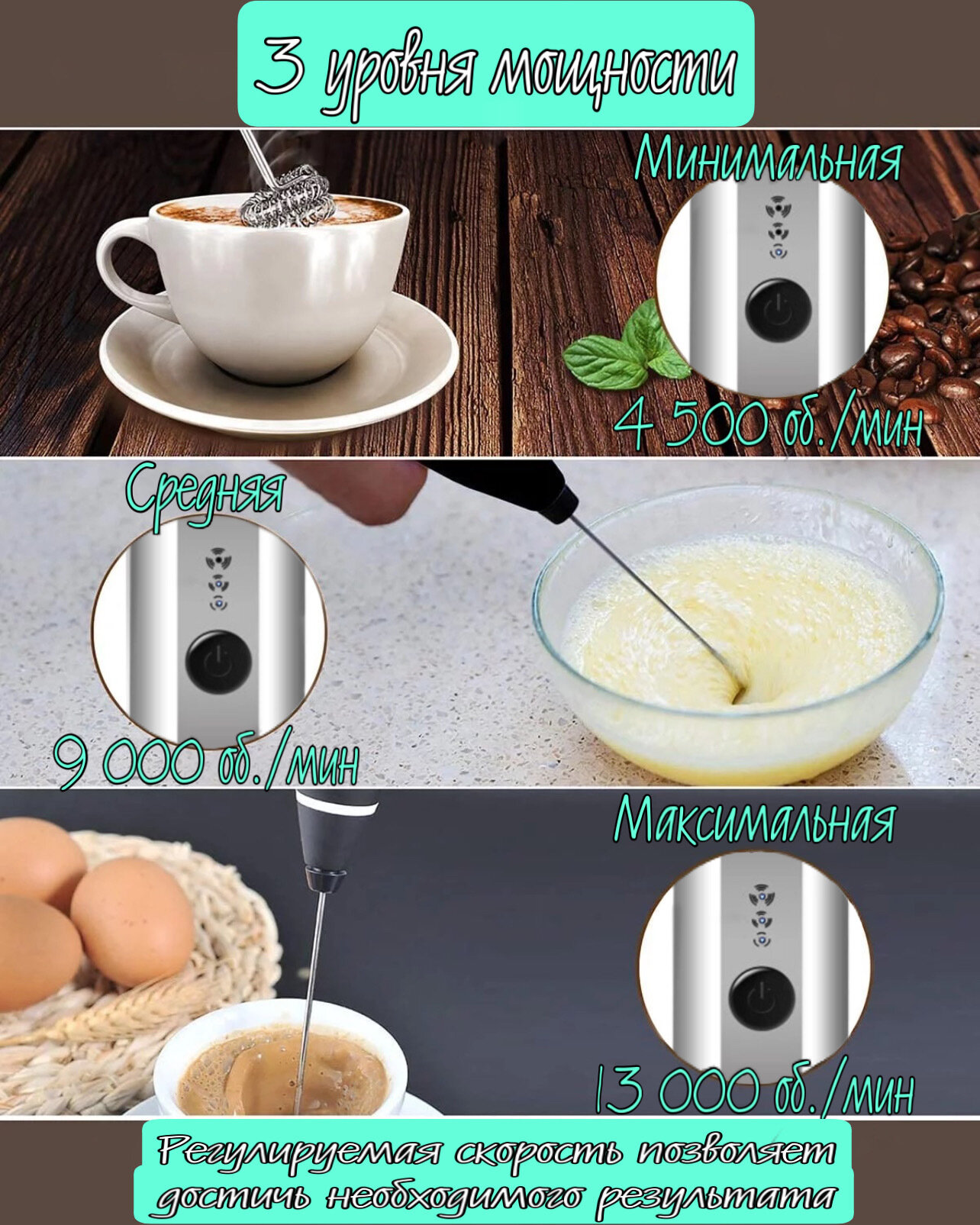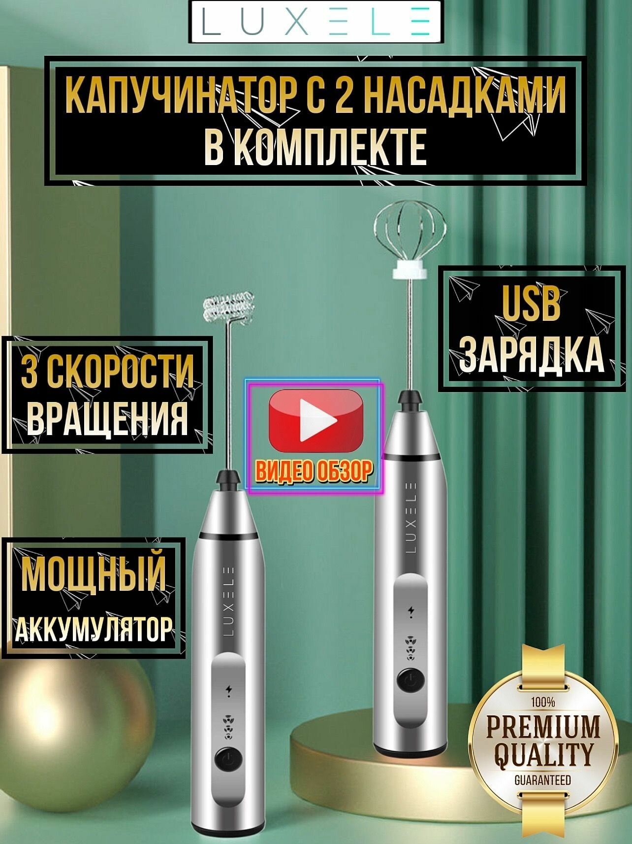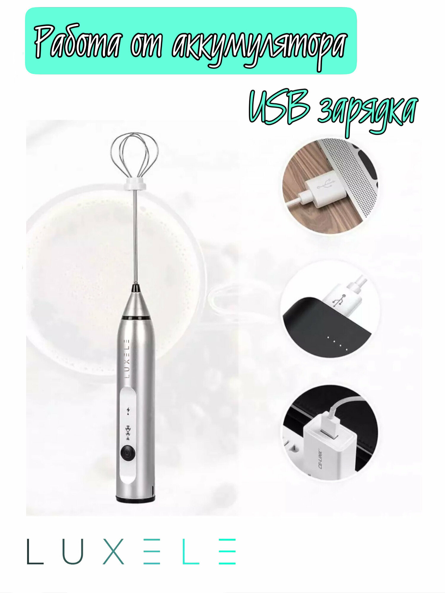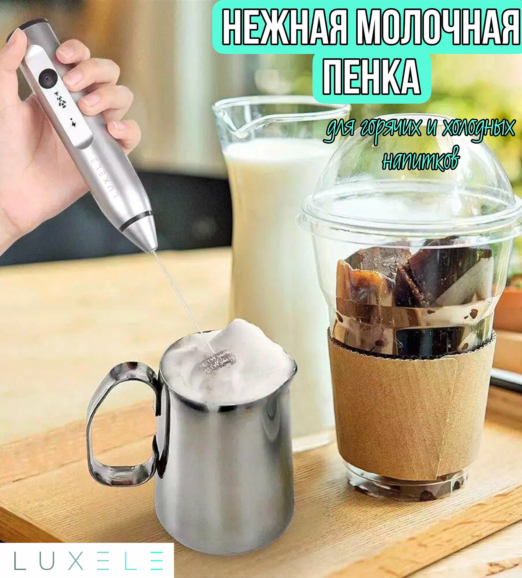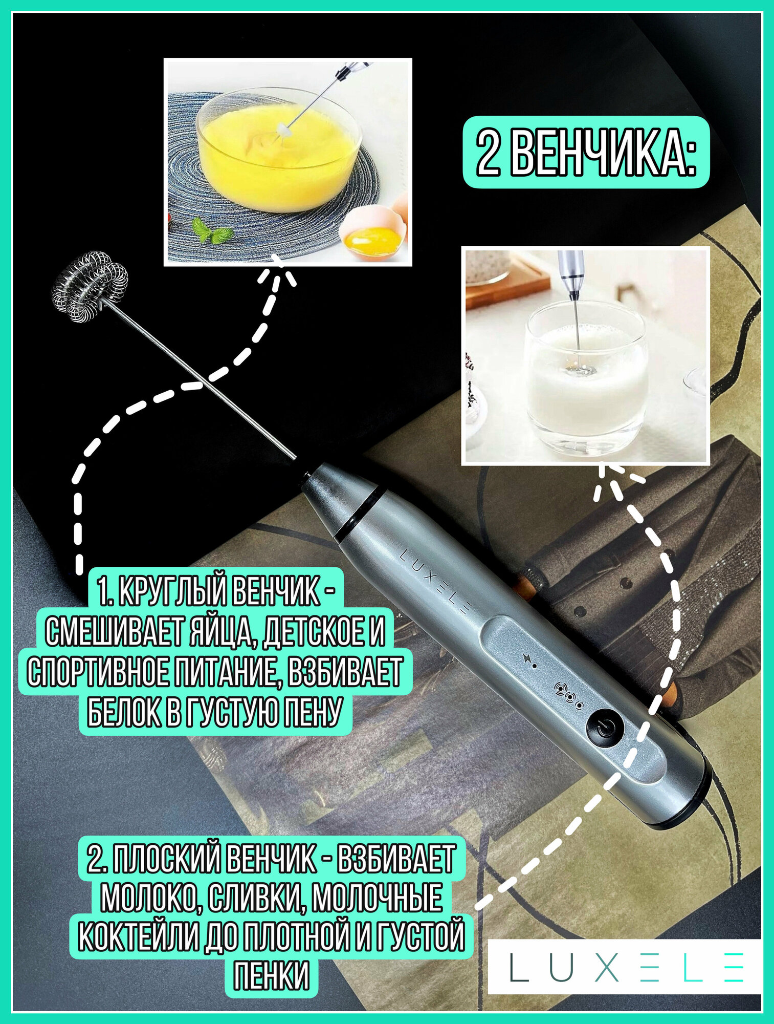 Капучинатор LUXELE, вспениватель молока (мини-миксер) с двумя венчиками интересное: