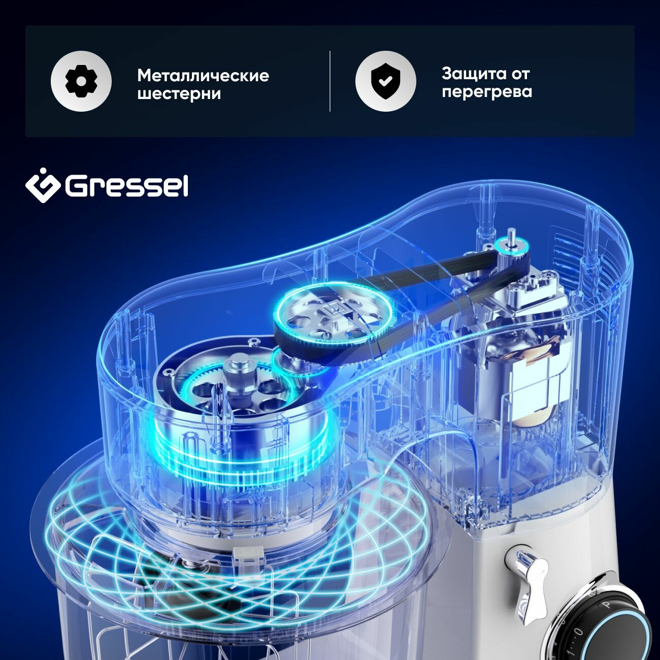 Планетарный миксер Gressel GRM-3004 с чашей, 1300 Вт, 10 скоростей, белый интересное:
