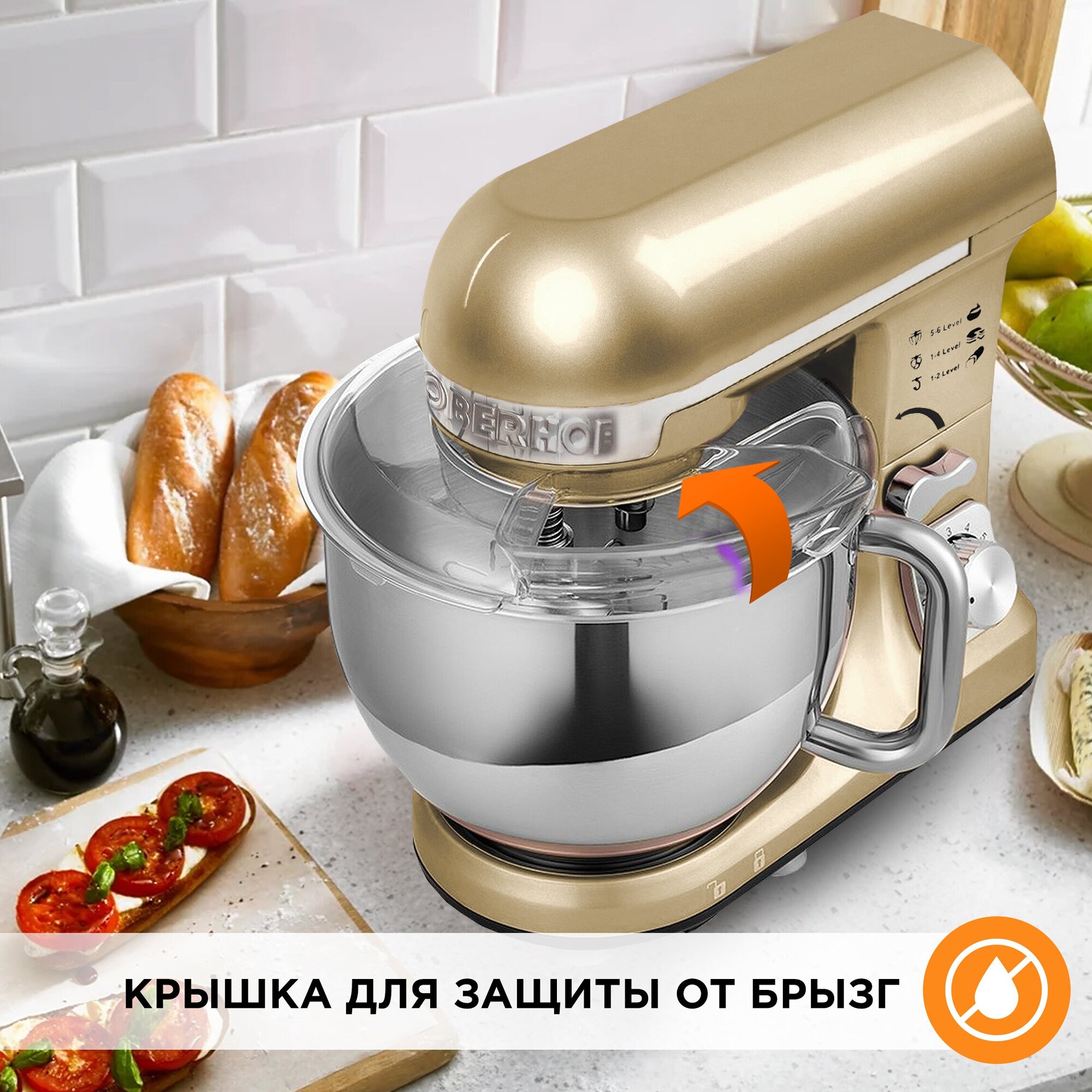 Планетарный миксер OBERHOF Breth C-34 Gold/ Стационарный миксер для теста кондитерский/ Тестомес/ Объем чаши 5л/ 3 насадки/ 6 режимов скорости/ 1400Вт интересное: