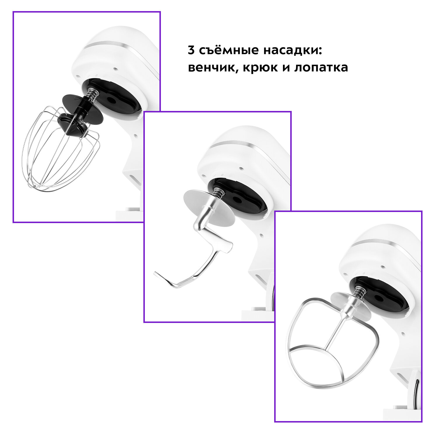 | Насадки | венчик для взбивания / крючки для замешивания теста / насадка для приготовления пюре |