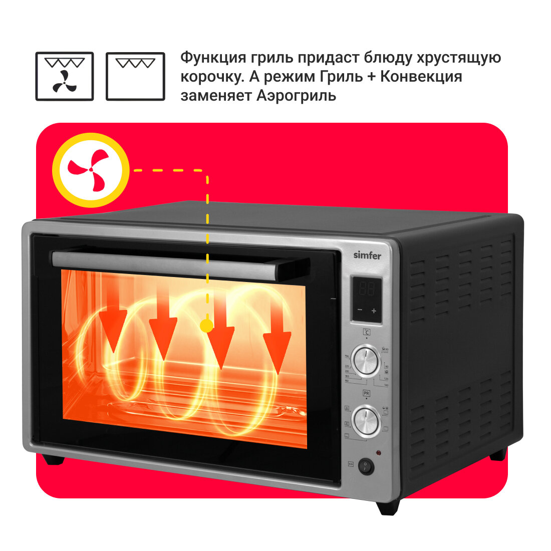 Мини-печь Simfer M7071 (6 режимов, конвекция, двойное стекло, цифровой дисплей, цвет серый) интересное: