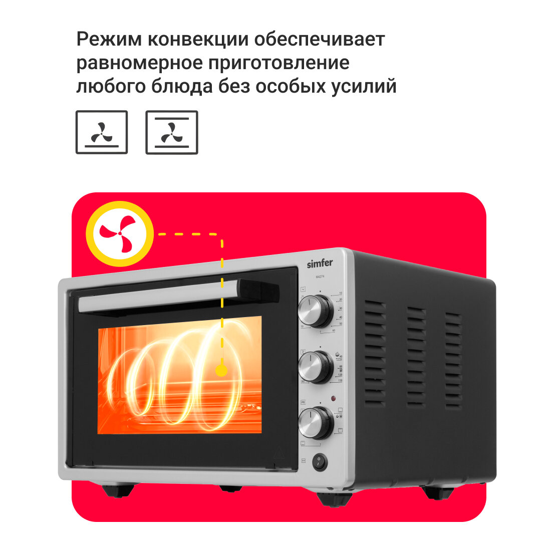 Мини-печь Simfer M4274 (6 режимов, конвекция, двойное стекло, цвет серый) интересное: