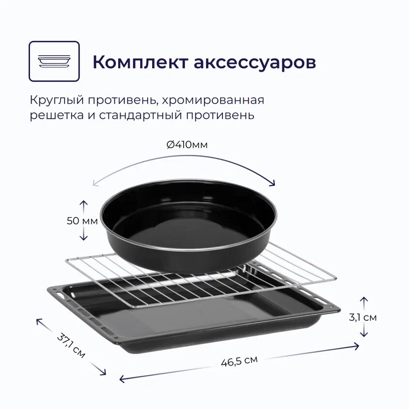 | Комплектация | круглый противень / противень / решётка |