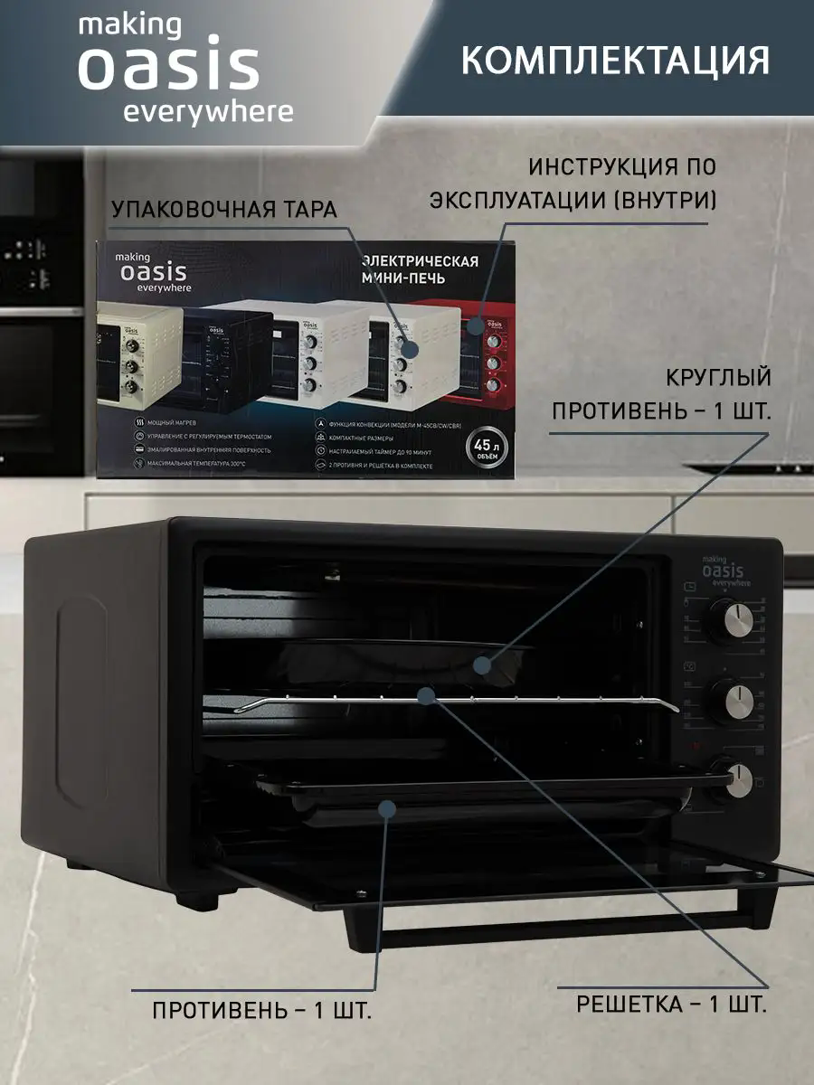Печь электрическая Oasis M-45B Чёрный интересное: