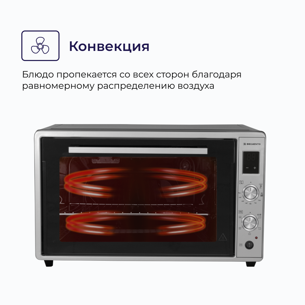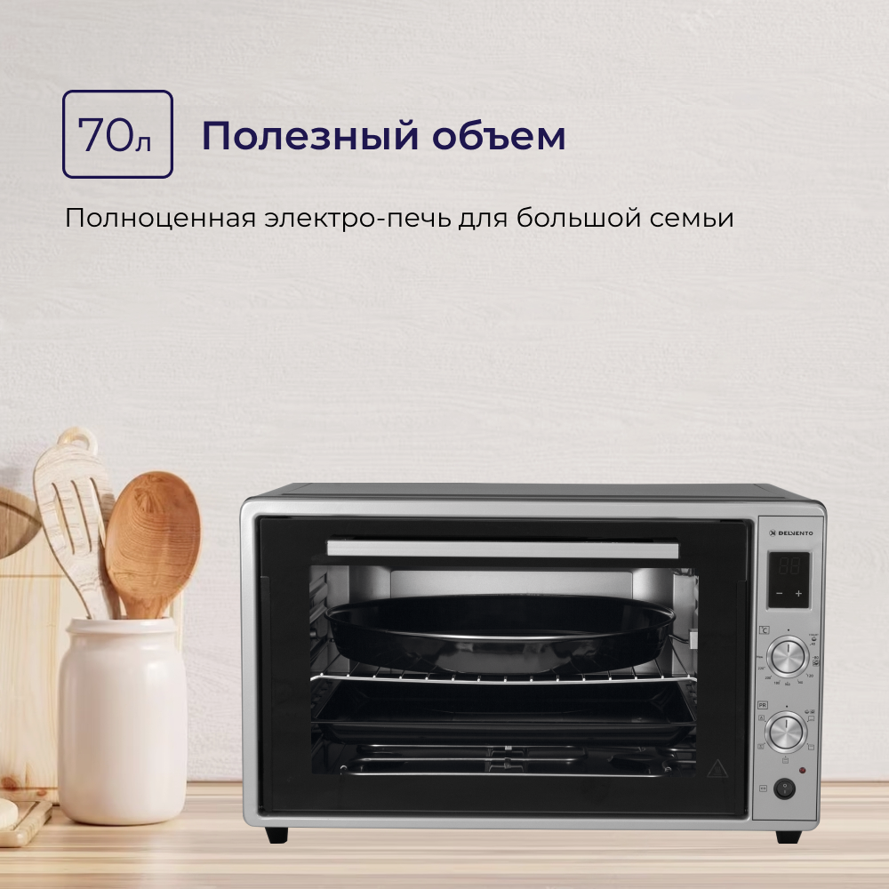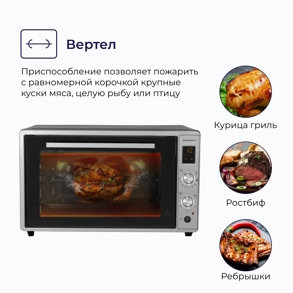 Мини печь DELVENTO D7012 с вертелом 70 л, 40⁰ - 240⁰, 2 кВт, серебристая интересное: