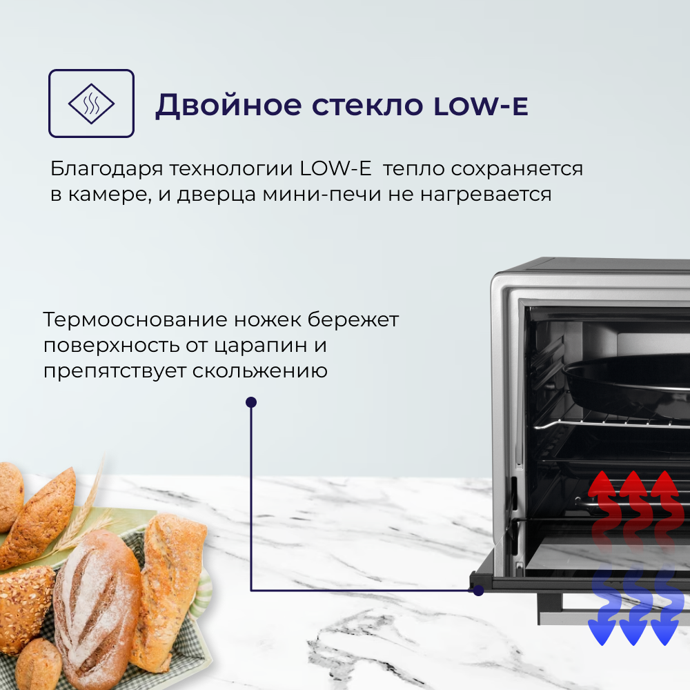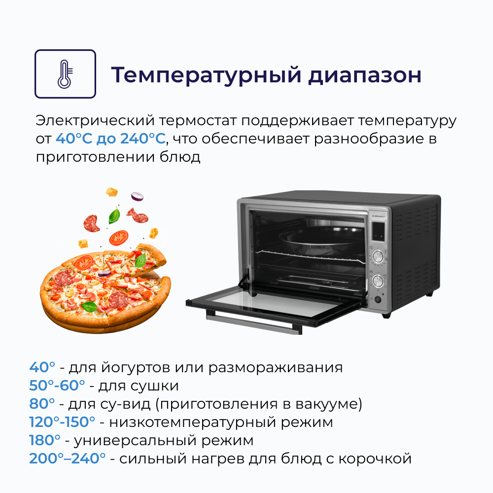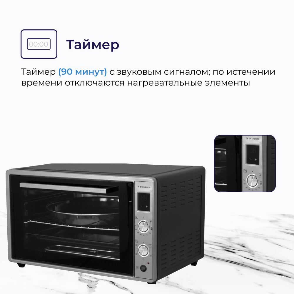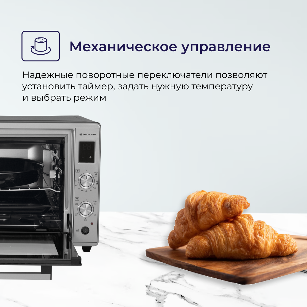 Мини печь DELVENTO D7012 с вертелом 70 л, 40⁰ - 240⁰, 2 кВт, серебристая интересное: