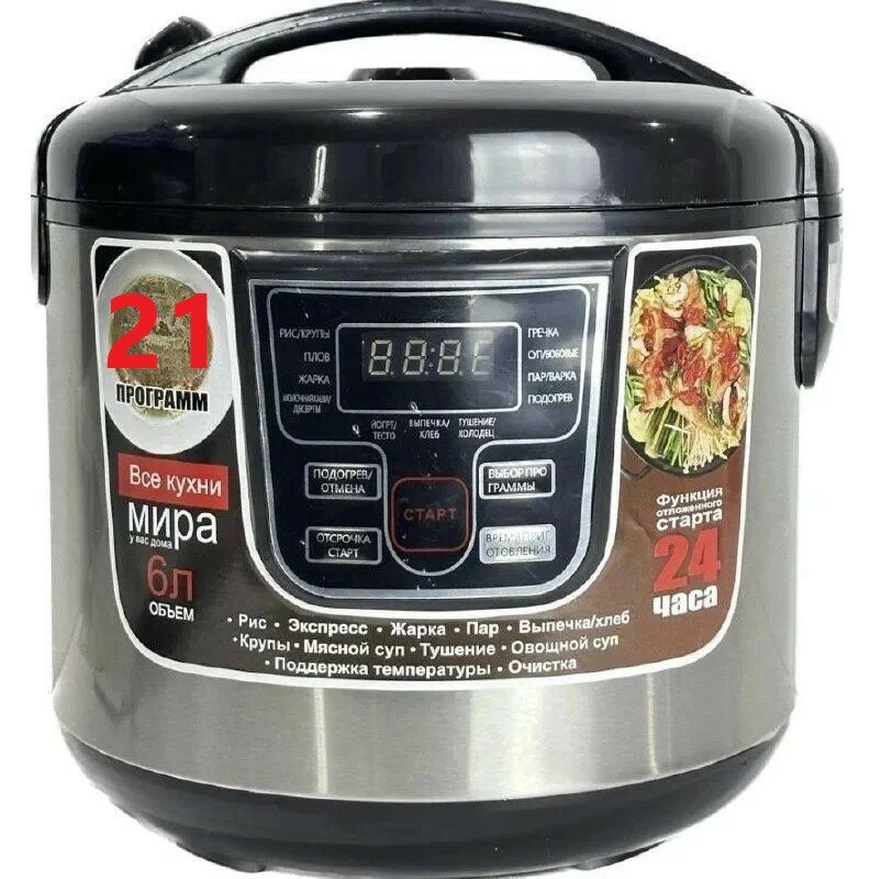 Мультиварка PRO-166, керамическое покрытие, 6л.,900Вт, поддержание температуры, отложенный старт, электронное управление, таймер 24 часа, 21 программа интересное:
