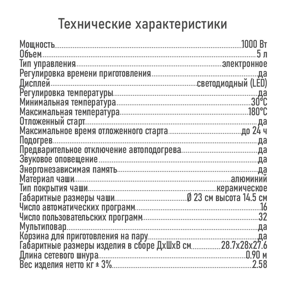 | Дополнительные функции | отложенный старт / поддержание тепла |