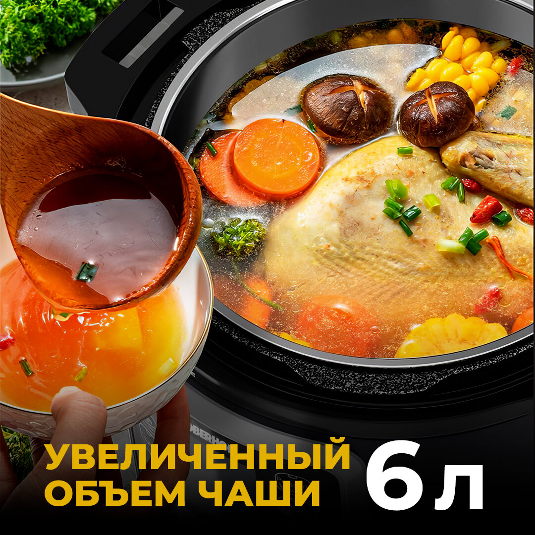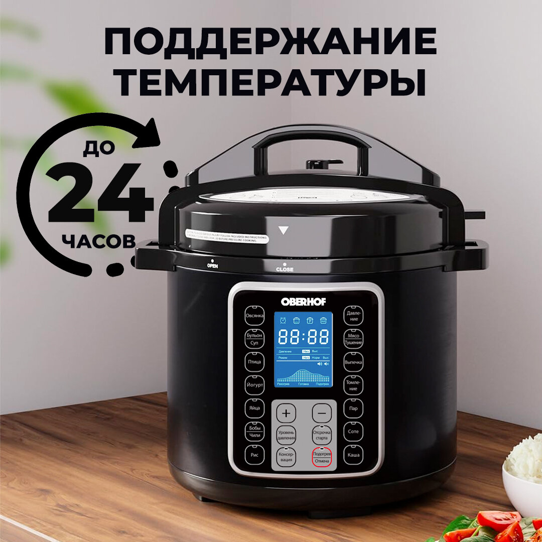 Умная мультиварка 6 литров, скороварка, пароварка, йогуртница, 15 программ, 2 крышки в комплекте (стеклянная и с клапаном), антипригарное покрытие OBERHOF Hausmannskost M-15 интересное: