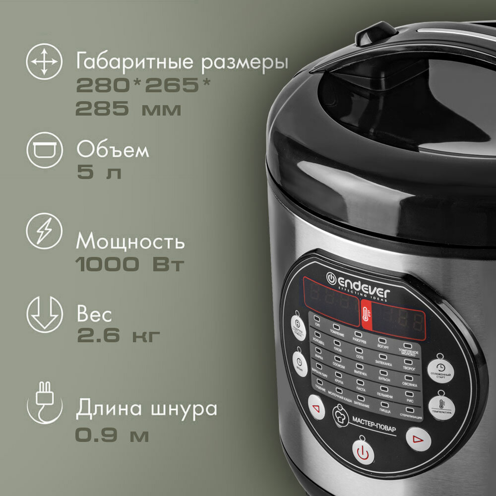Мультиварка 5 литров Endever VITA-121 / 25 автоматических программ, мультиповар