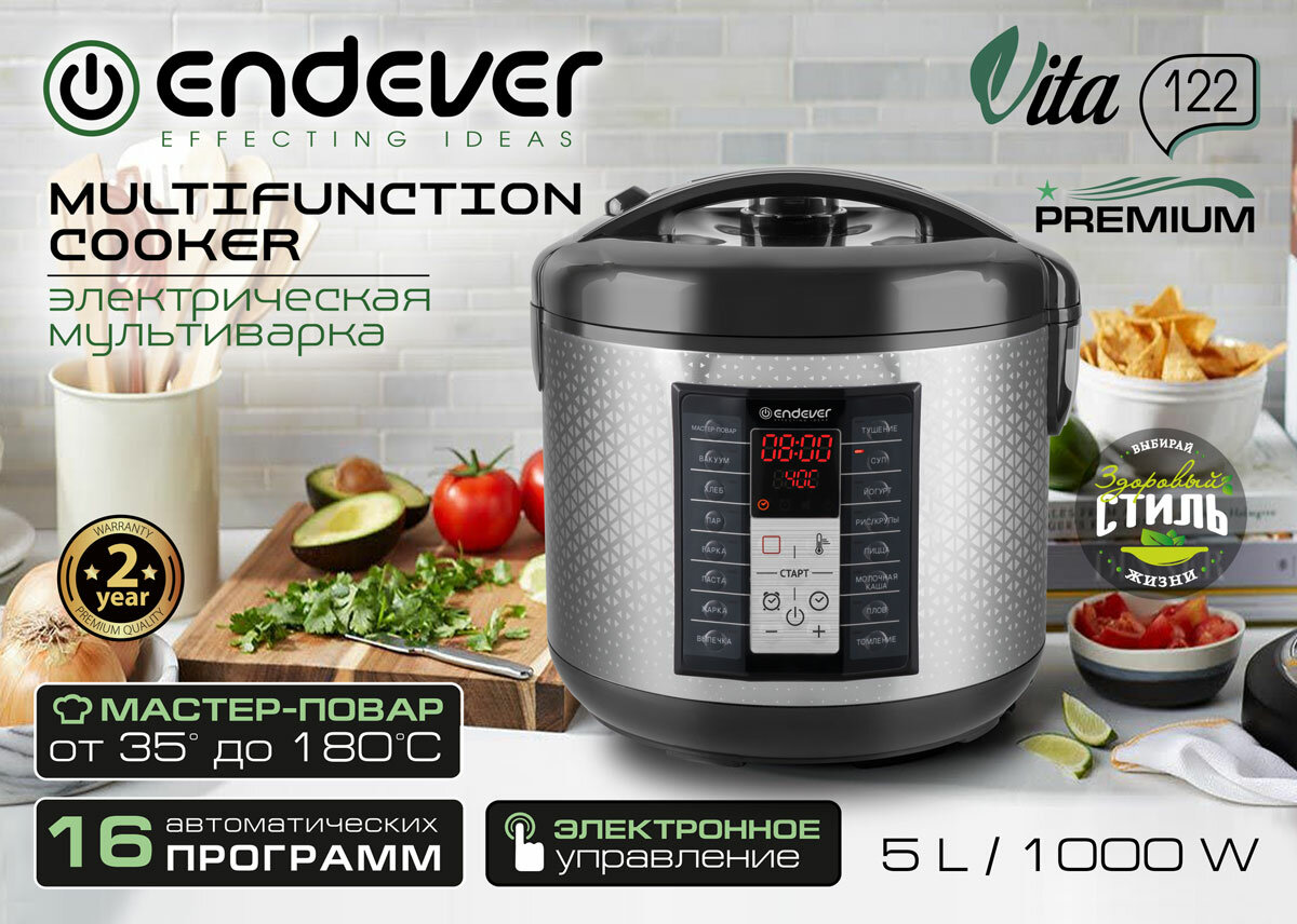 Купить Мультиварка 5 литров Endever VITA-122 / 16 автоматических программ, мультиповар
