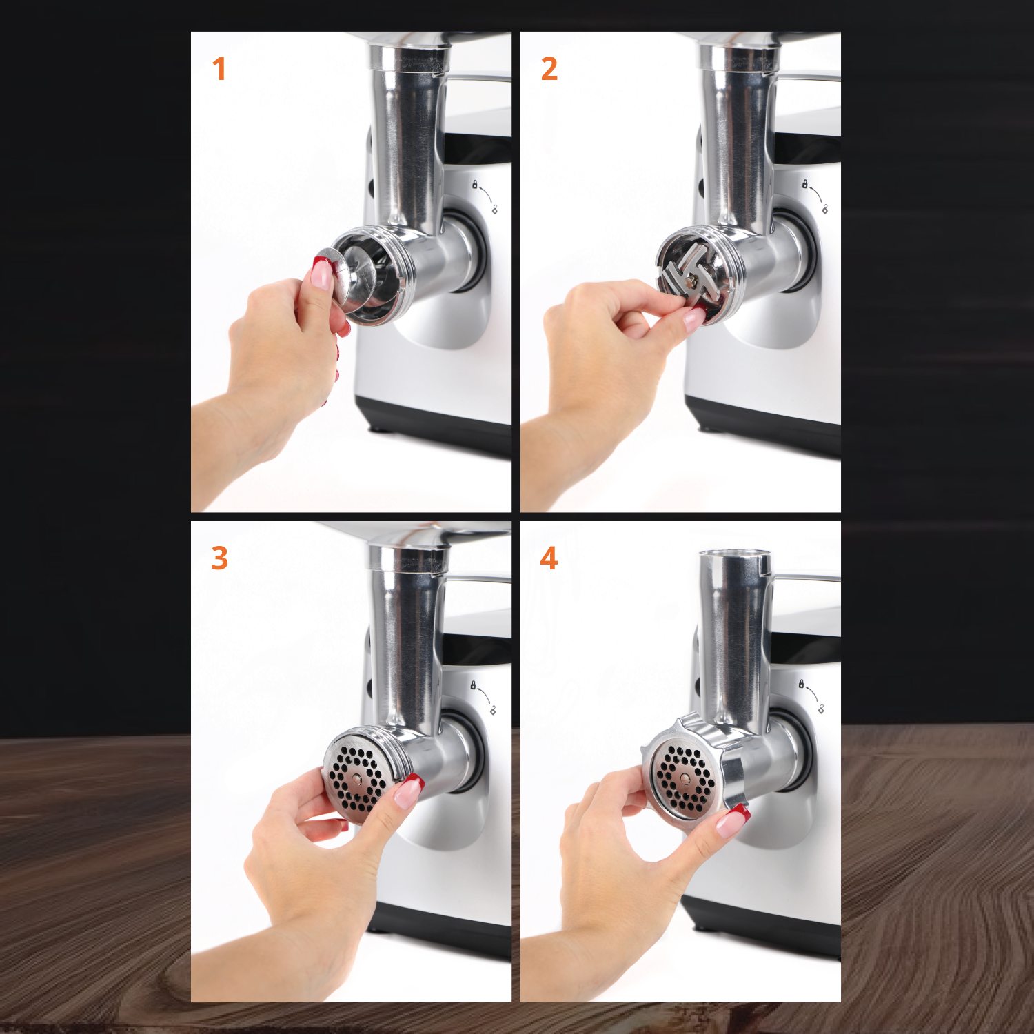 | Насадки | диск для фарша / насадка для кеббе / насадка для приготовления колбас / насадка для шинковки / насадка-терка |