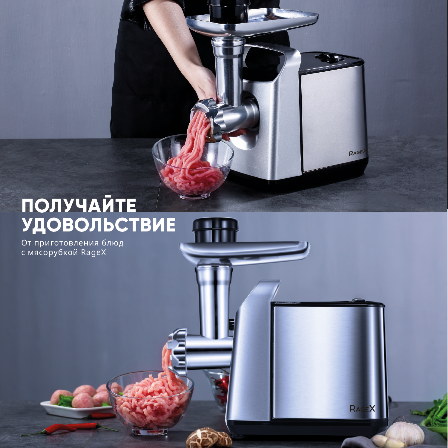 Мясорубка электрическая (электромясорубка, измельчитель для мяса) RageX R801-900, мощность 600 Вт, 1 скорость + реверс, серебряный интересное:
