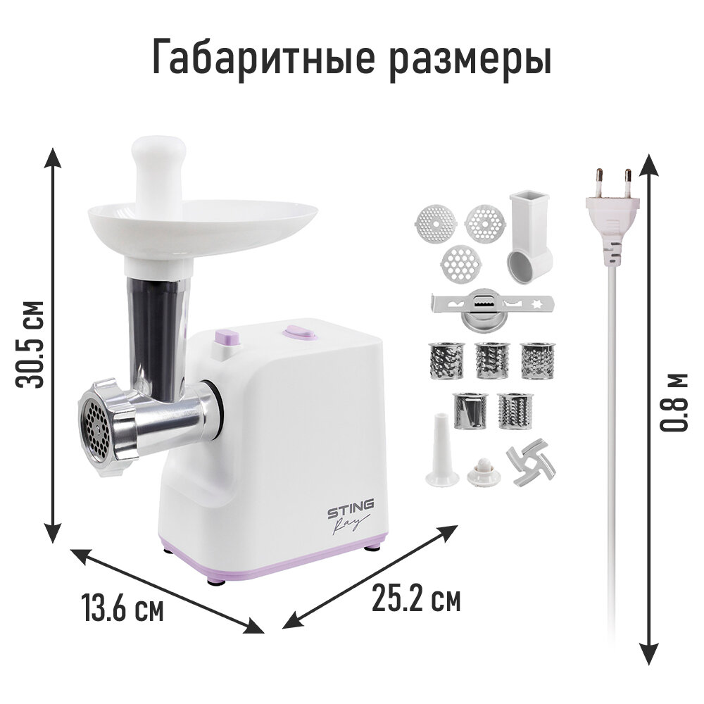 Мясорубка STINGRAY ST-MG2500B белый/лиловый интересное: