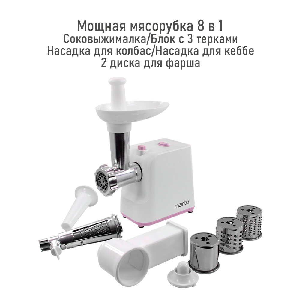Мясорубка MARTA MT-MG2027B белый/розовый интересное: