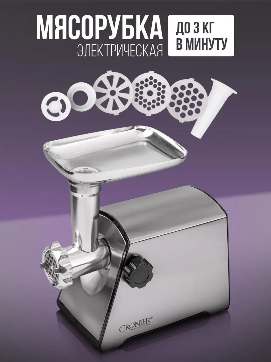 Мясорубка электрическая "Cronier", 1901, 6 насадок интересное:
