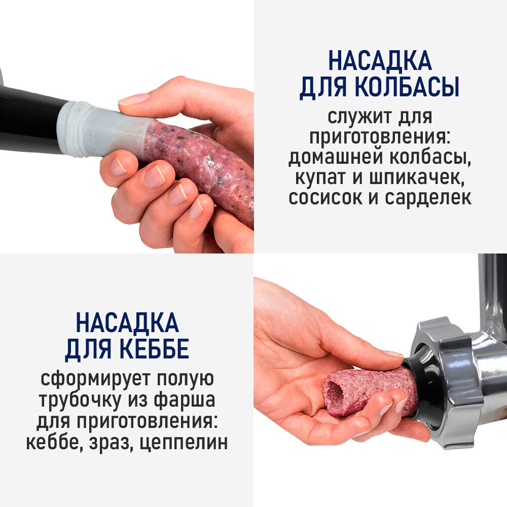 | Насадки | насадка для кеббе / насадка для приготовления колбас / соковыжималка |