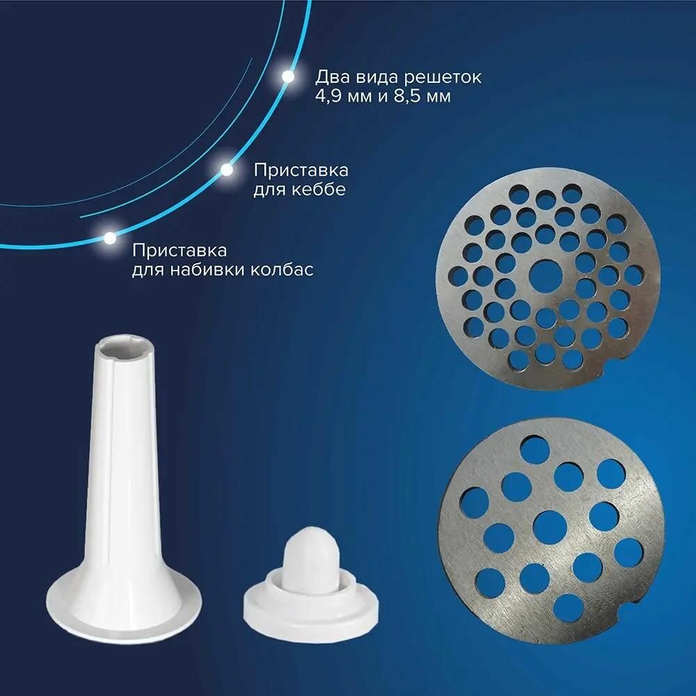 | Насадки | диск для фарша / насадка для кеббе / насадка для приготовления колбас |