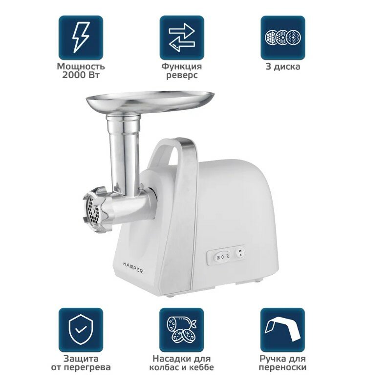 Мясорубка электрическая HARPER HMG-2011 / защита от перегрева / белый / подарок женщине
