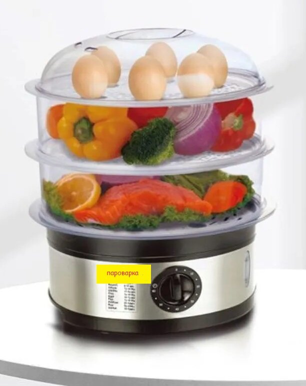 Высококачественная пароварка электрическая трехуровневая на 11 литров HEALTH для приготовления вкусной и здоровой пищи,функция таймера интересное: