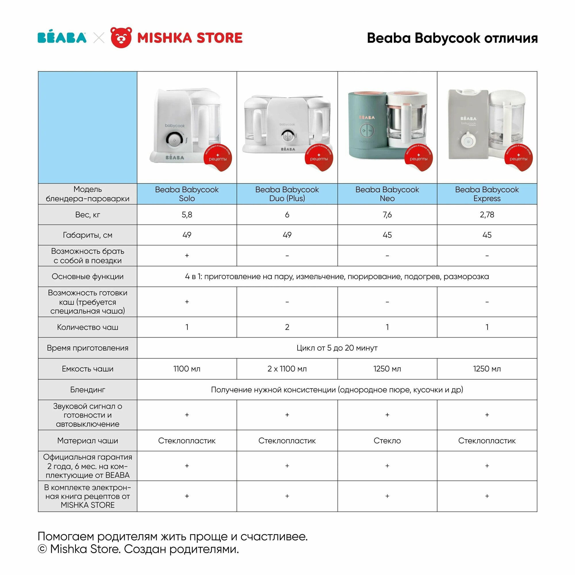 Beaba Подарочный набор: Babycook Express Блендер-пароварка Grey c аксессуарами интересное: