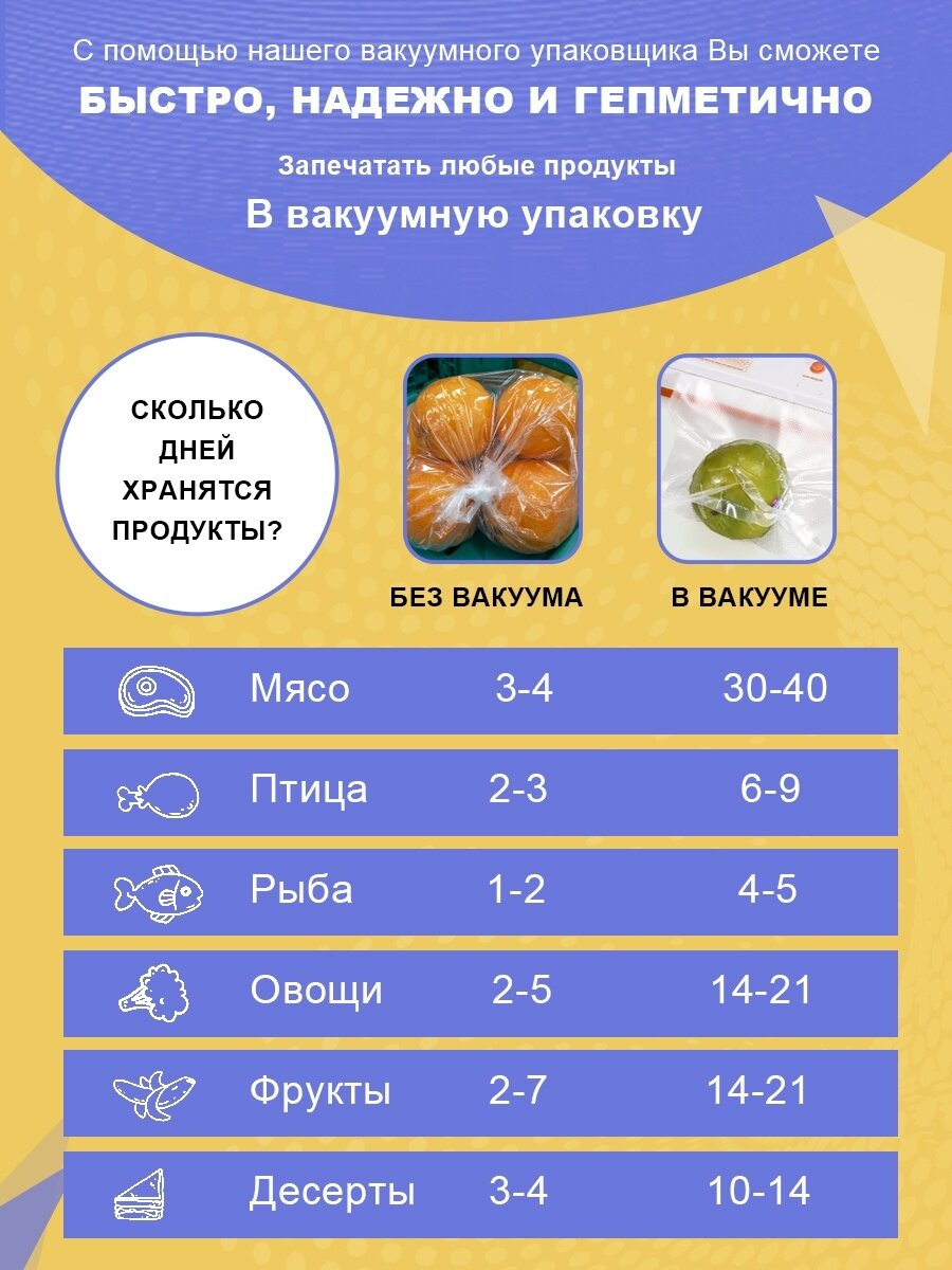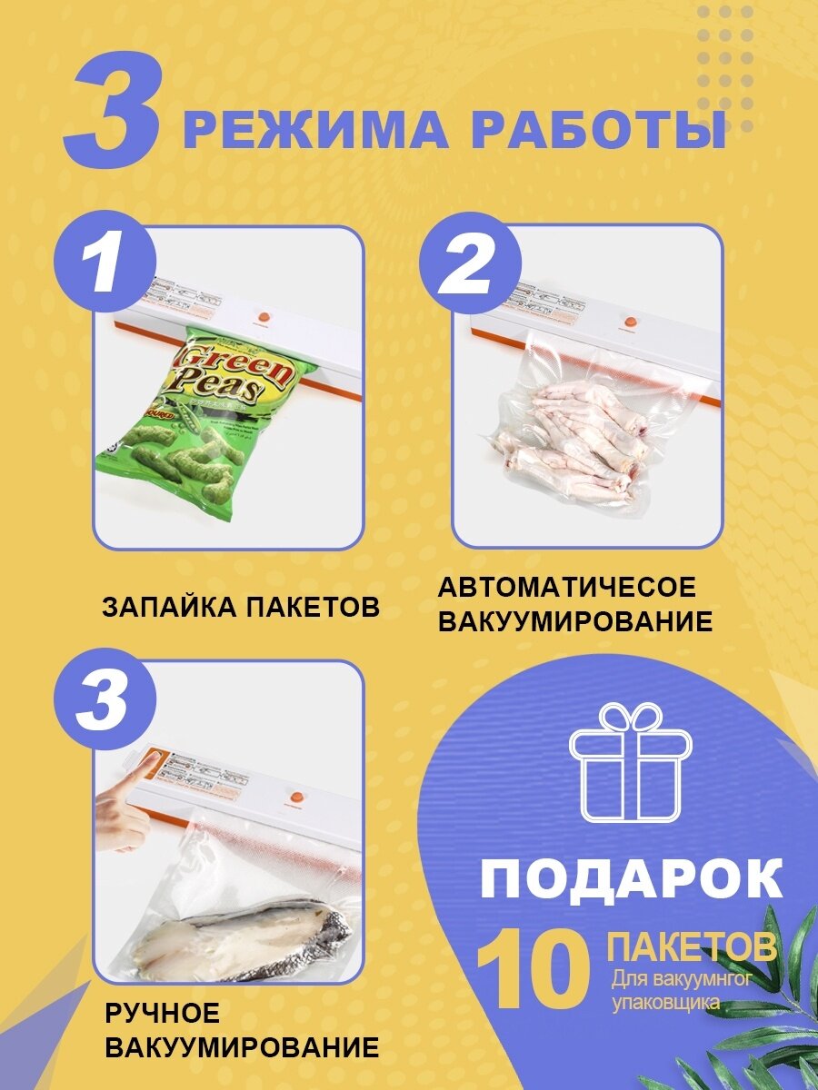| Подробная комплектация | Вакуумный упаковщик + подарок 10 пакетов |