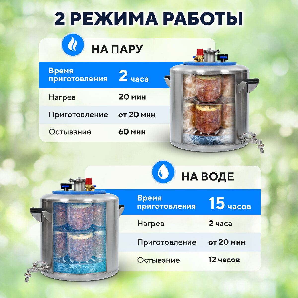 | Назначение | дистилляция / кипячение / консервирование / приготовление / самогоноварение |