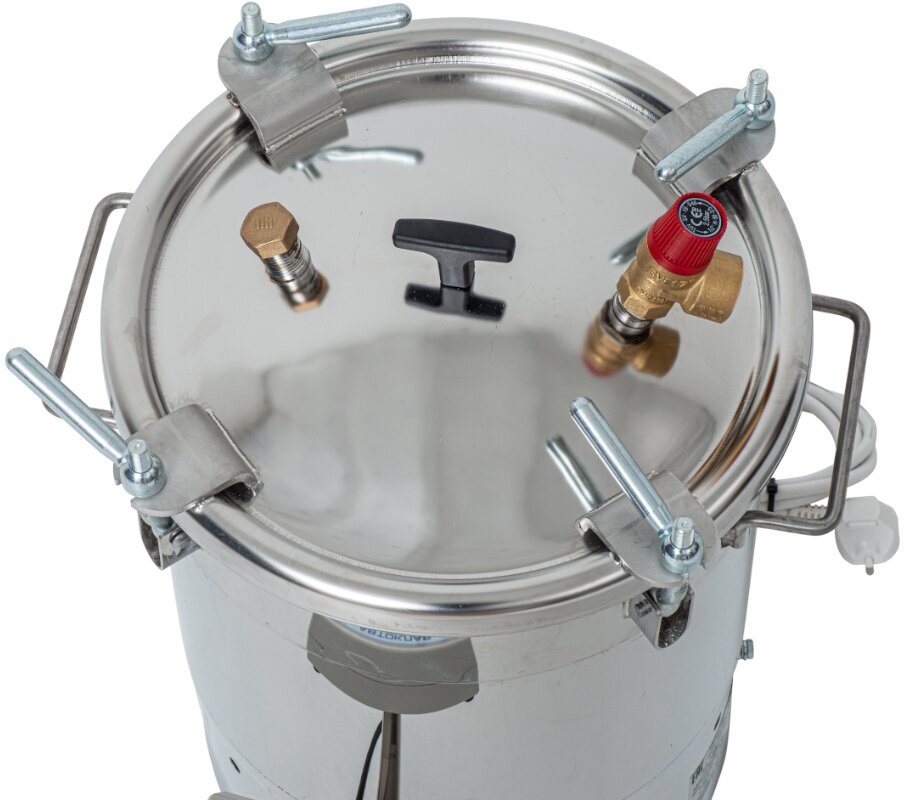 | Подробная комплектация | Автоклав в сборе – 1шт. Сливной кран – 1шт. Шланг для слива – 1шт. Клапан аварийного сброса избыточного давления – 1шт. Электронный блок управления - 1шт. Руководство по эксплуатации – 1шт. Книга рецептов – 1шт. Фальшдно - 1 шт. |