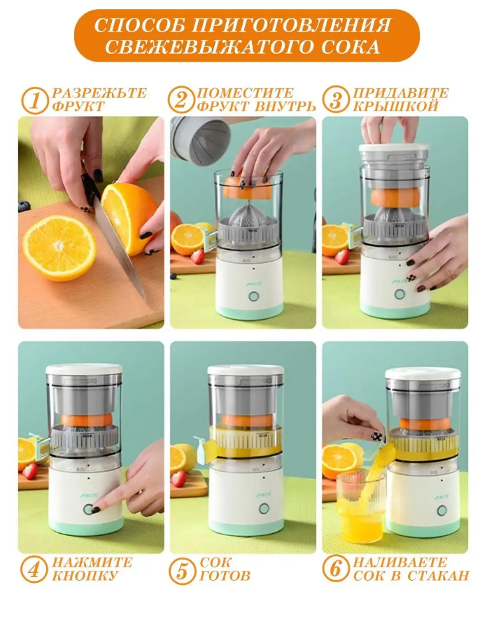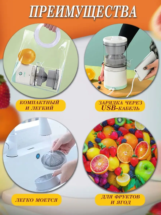Электрическая соковыжималка для цитрусовых и ягод, беспроводная интересное: