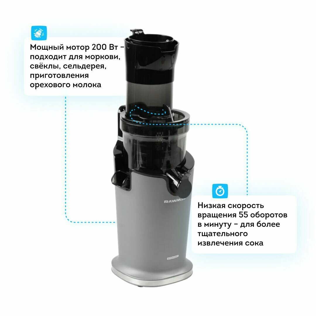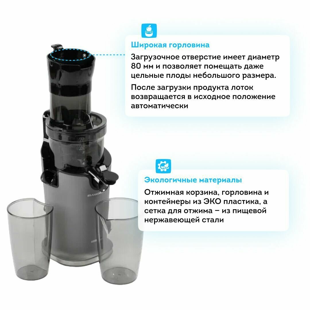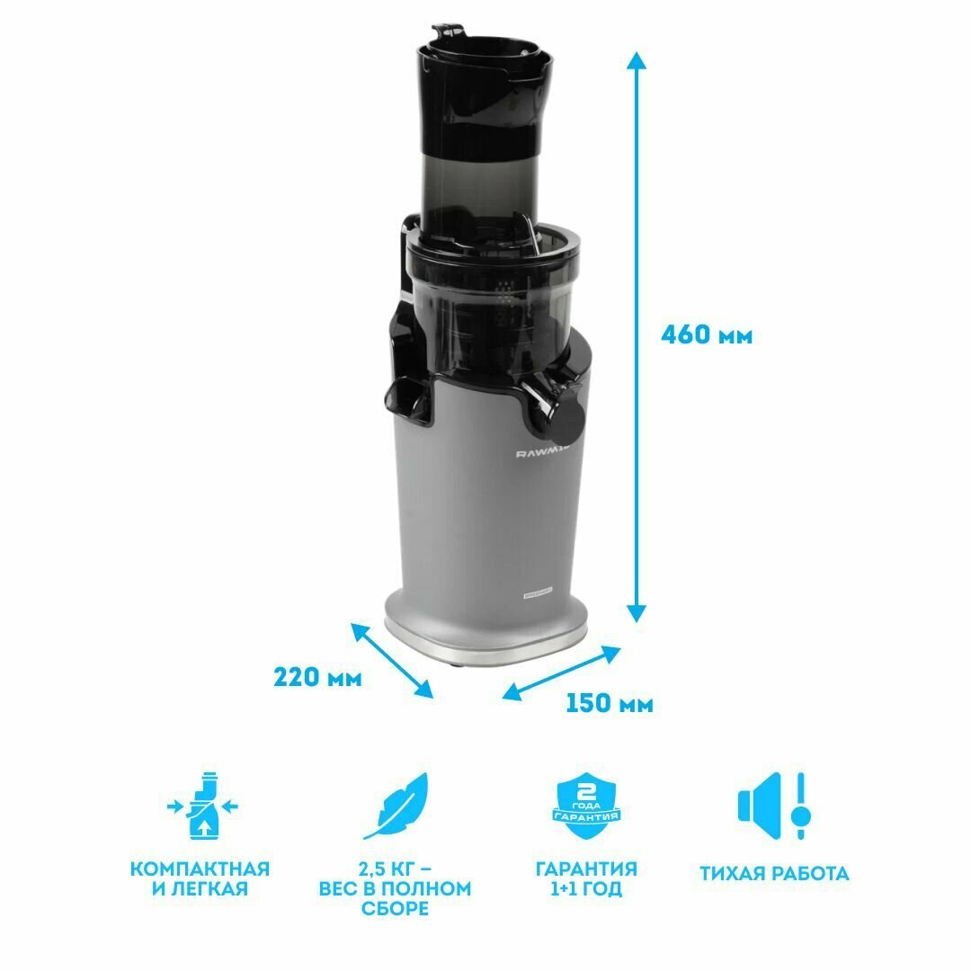 Соковыжималка шнековая электрическая, для цитрусов, зелени, орехового молока и овощей RAWMID Greenery RGJ-04 интересное: