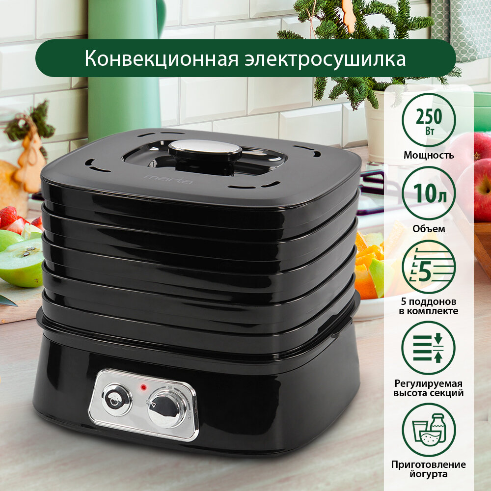 Купить MARTA MT-1946 5 поддонов черный жемчуг сушилка д/фруктов,овощей