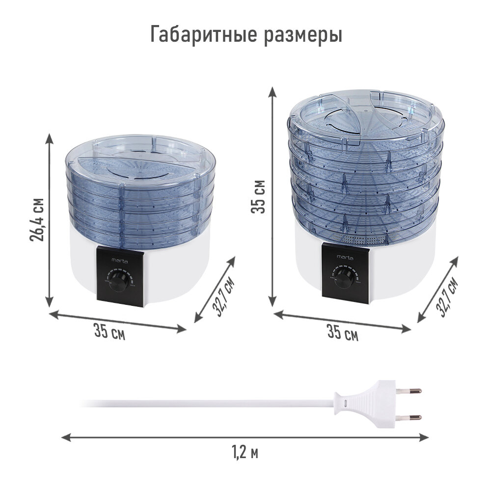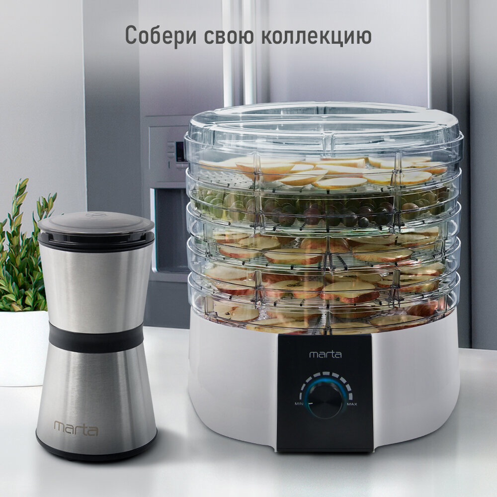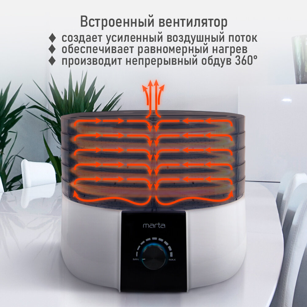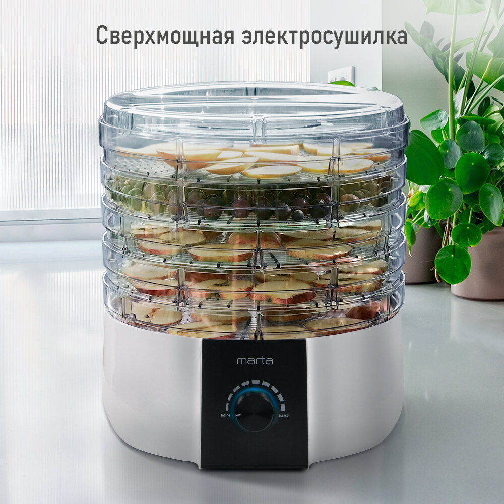 Электросушилка MARTA MT-FD1889B 7 поддонов (5+1 для пастилы+1 для ягод) белый жемчуг интересное: