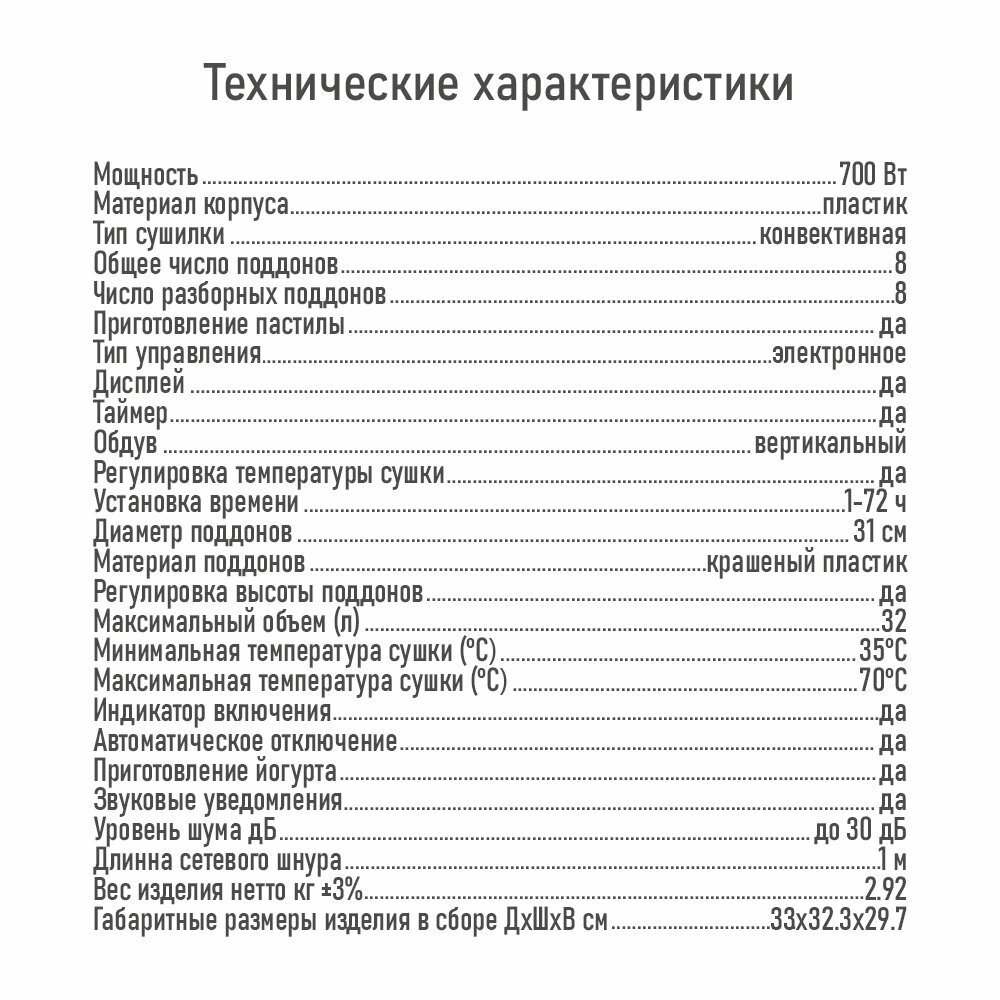 Сушилка для овощей и фруктов, 8 поддонов, 32л