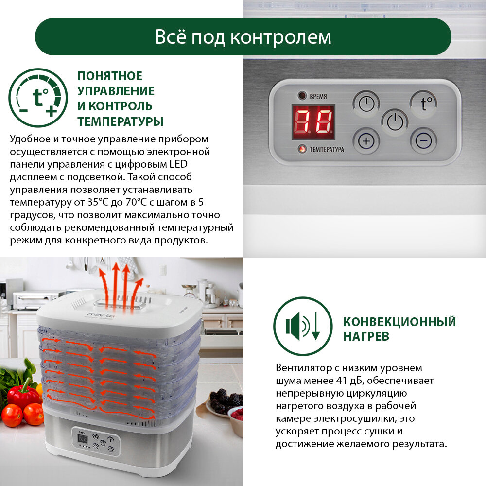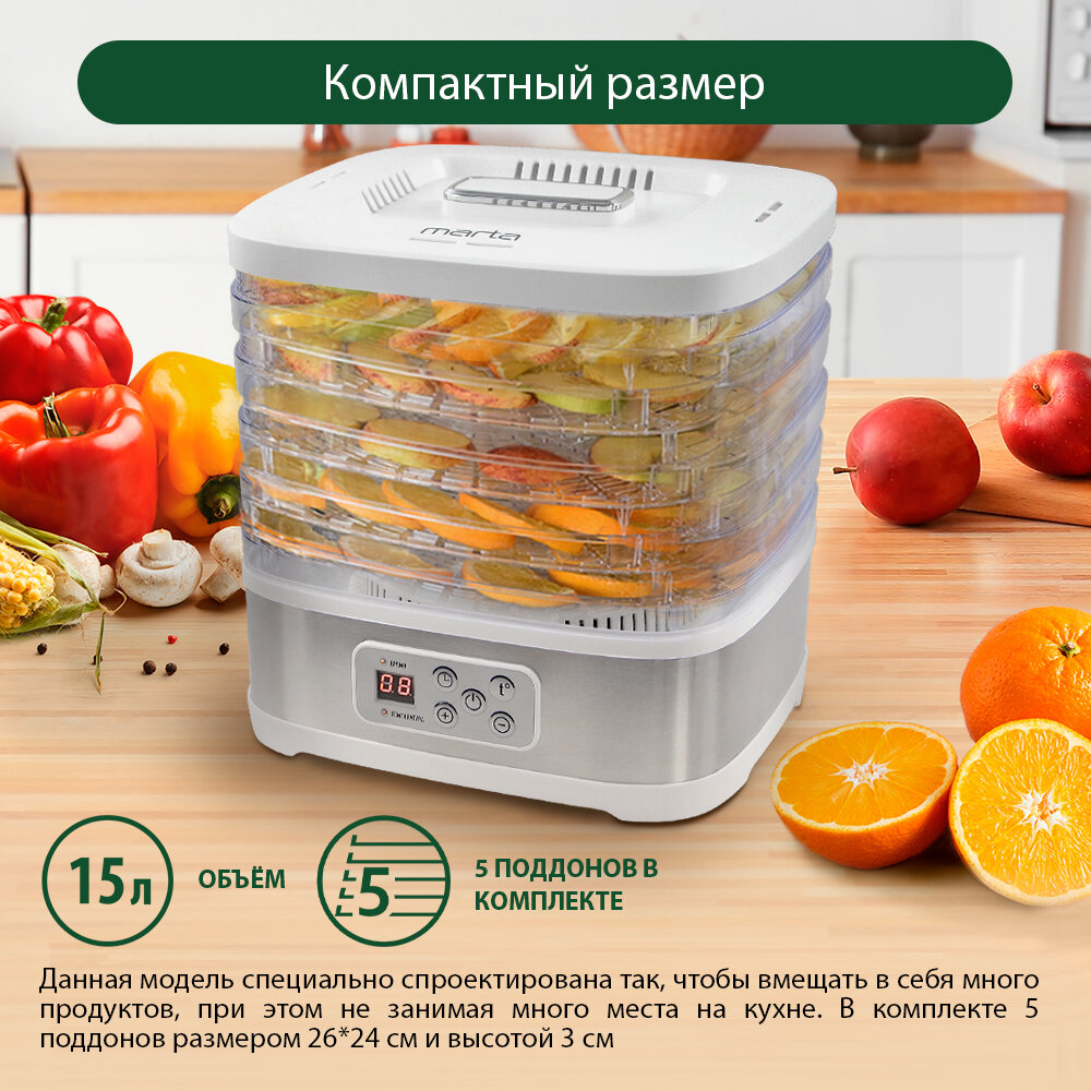 Электросушилка MARTA MT-1959 5 поддонов белый жемчуг интересное: