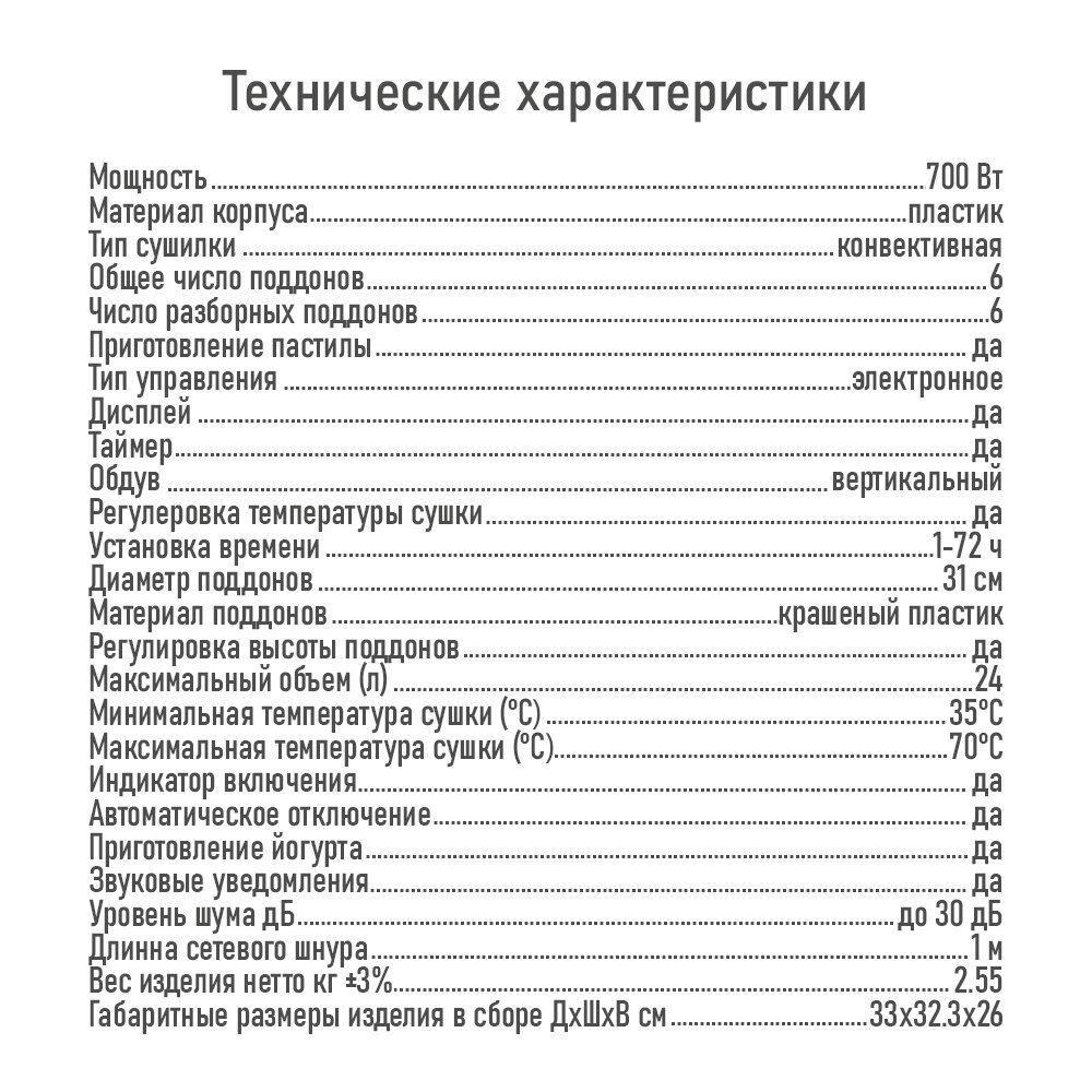 | Число поддонов | 6 |