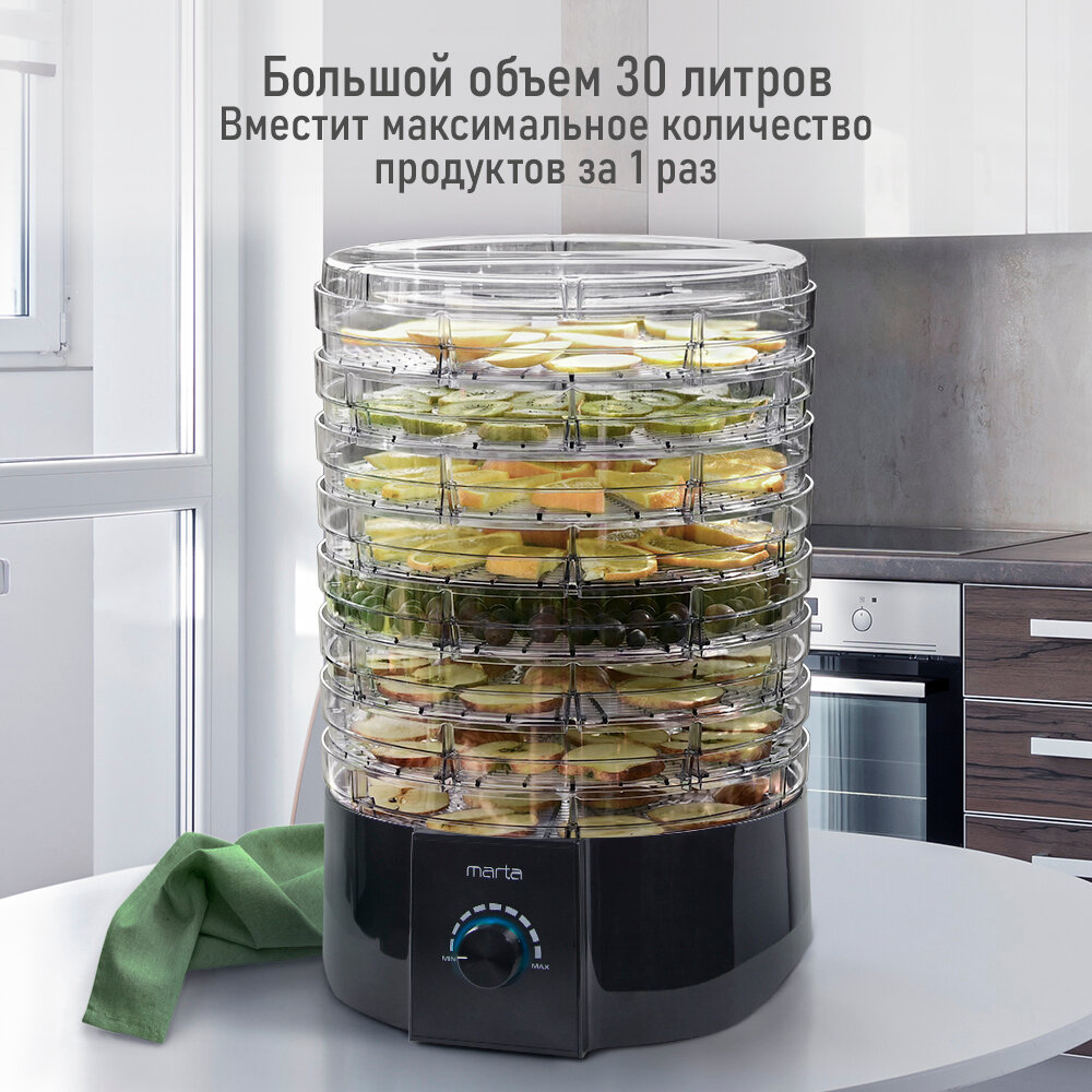 Купить Электросушилка MARTA MT-FD1889E 10 поддонов (8+1 для пастилы+1 для ягод) черный жемчуг