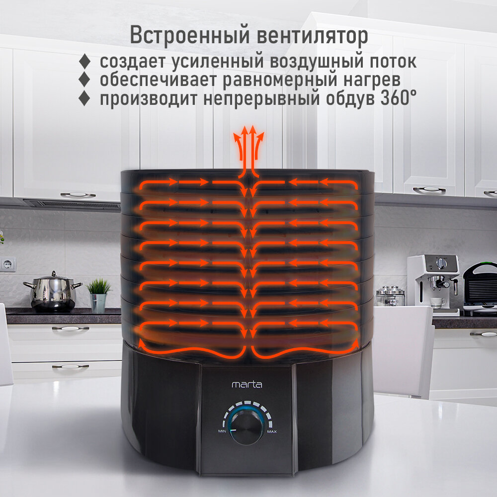 Электросушилка MARTA MT-FD1889E 10 поддонов (8+1 для пастилы+1 для ягод) черный жемчуг интересное: