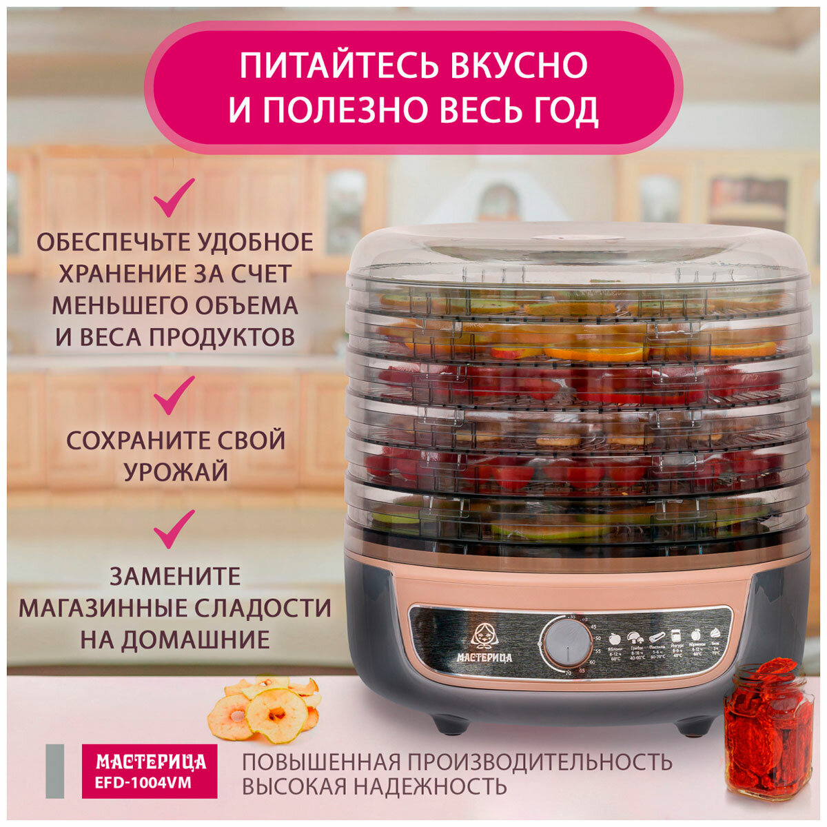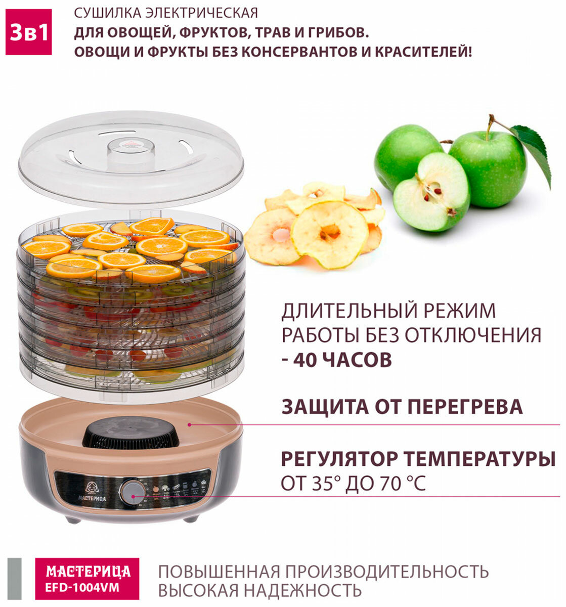 Купить Сушилка для овощей 3 в 1 Мастерица EFD-1004VM, с функциями приготовления йогурта и десертов, серо-бежевый